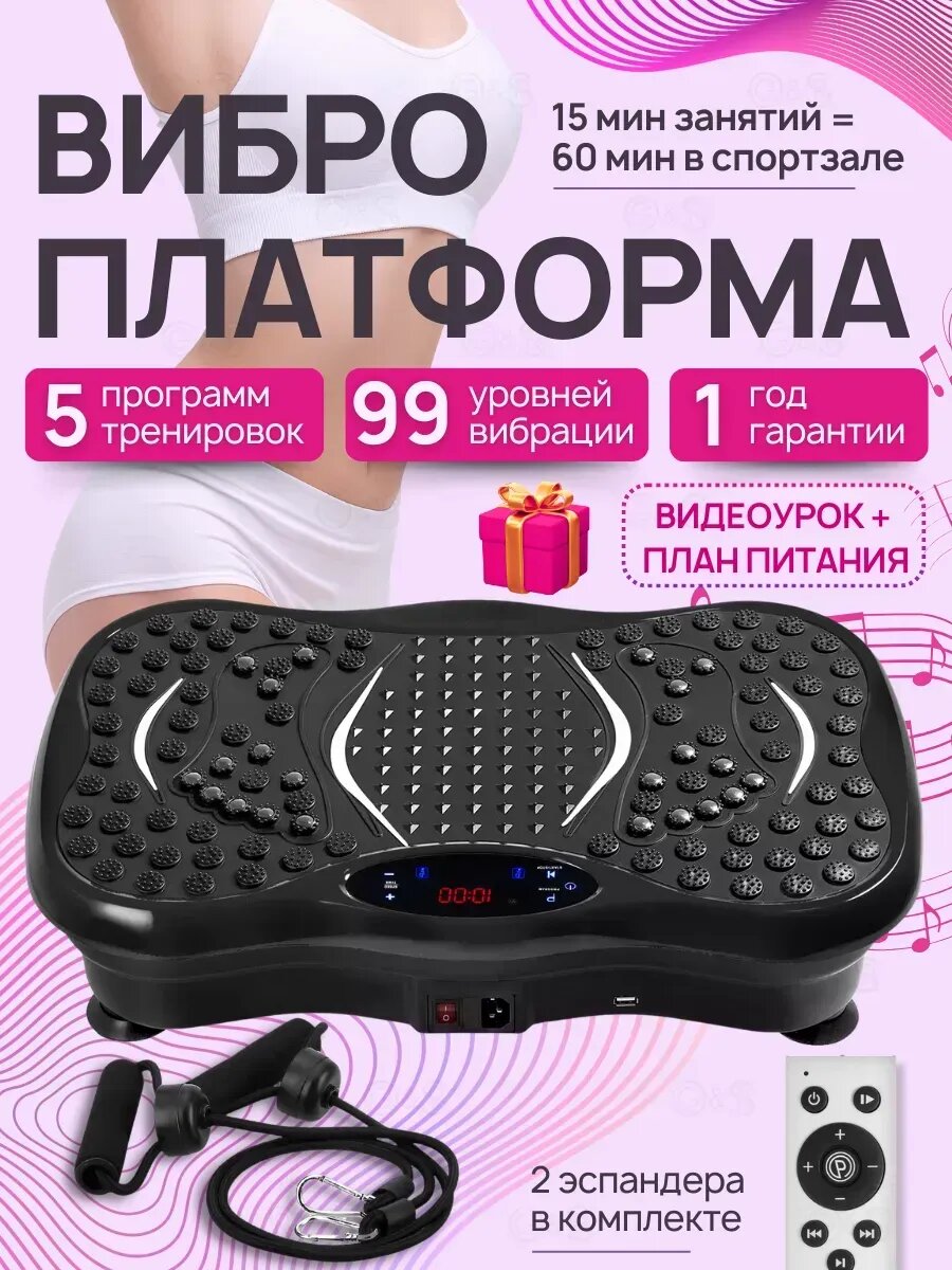 Отзывы на Виброплатформа для похудения , тренажер, массажер для ног, 99 скоростей, эспандеры 2 шт, чёрная