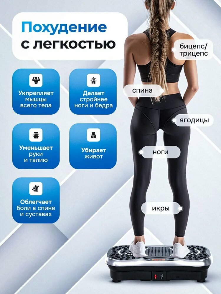 Виброплатформа для похудения, белый хром, пульт управления, до 120кг информация:
