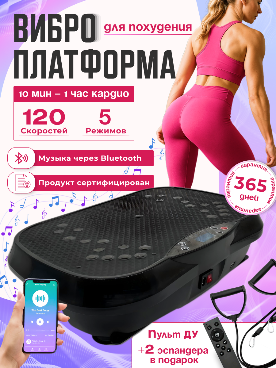 10 цен на Виброплатформа для похудения 120 скоростей + эспандеры, вибро-тренажер для всех групп мышц, антицеллюлитный кардио тренажер