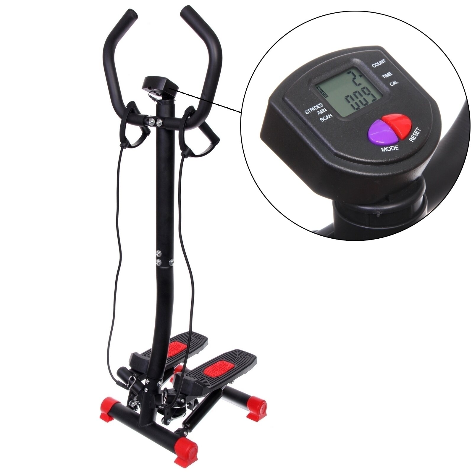 10 цен на Степпер поворотный MSR-2000 с эспандерами кардиотренажер для дома, похудения и укрепления ног, ягодиц, рук (черно-красный)