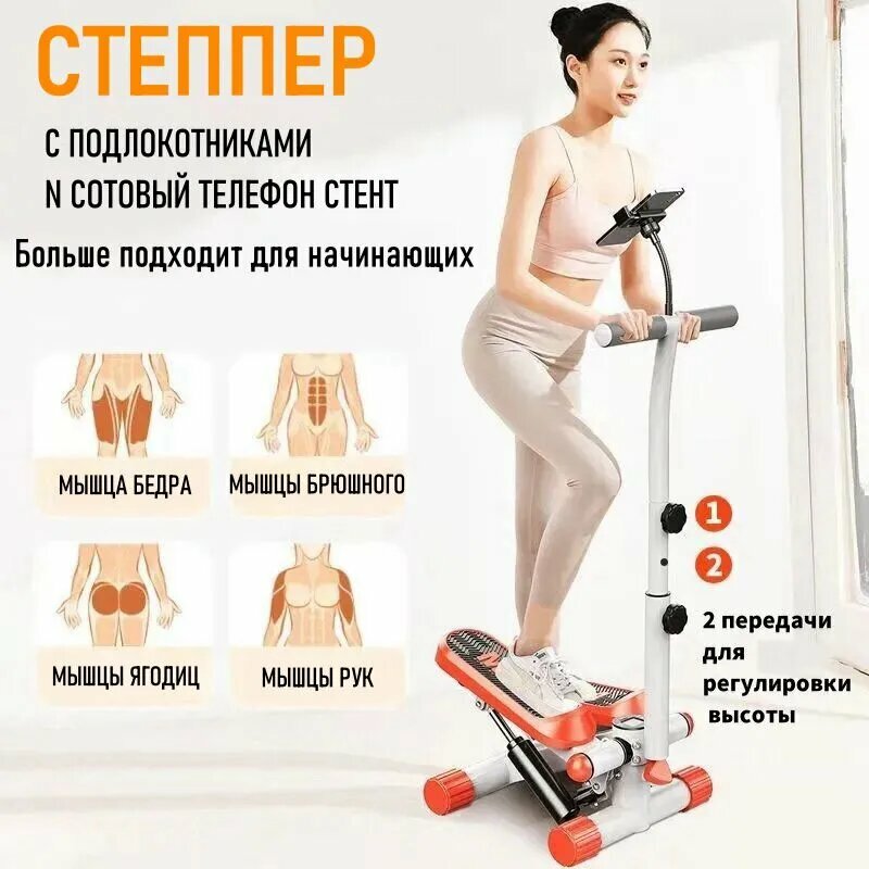 10 цен на Степпер тренажер для дома, с подлокотниками, держателем для мобильного телефона, нескользящим ковриком
