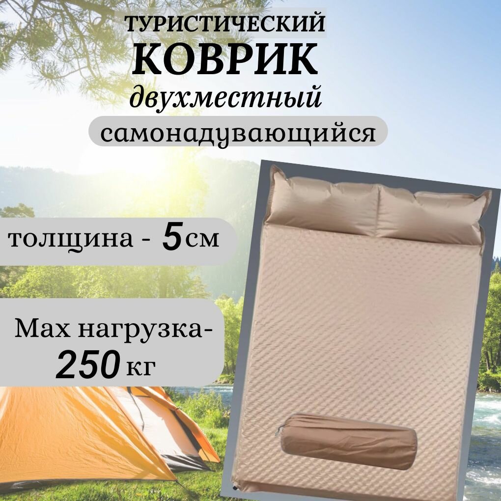 Коврик туристический, толщина 5см, двухспальный, самонадувающийся. информация: