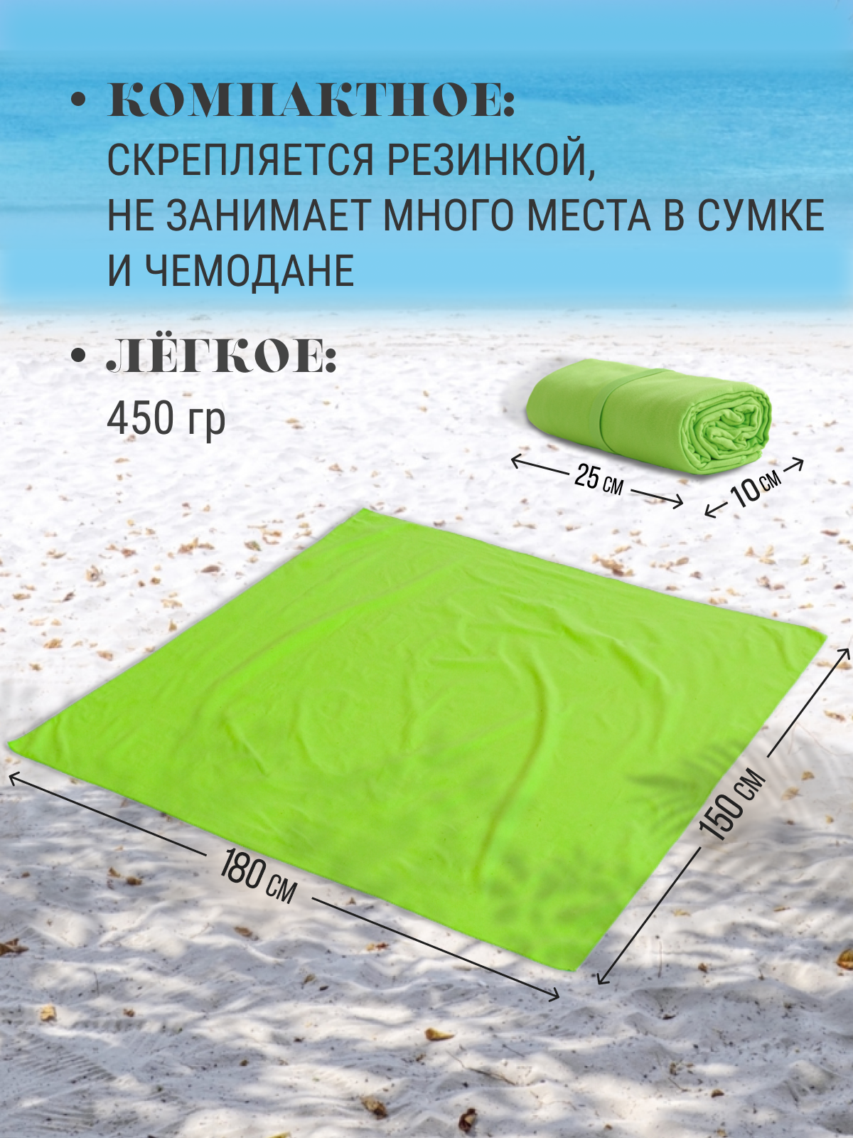 Пляжное покрывало из микрофибры впитывающее, размер 150*150 см. информация: