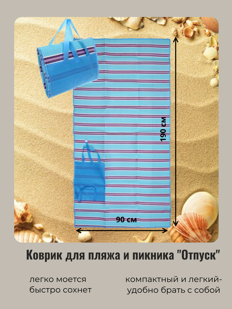 Коврик для пляжа и пикника Отпуск, размер 180х90 см, голубой информация: