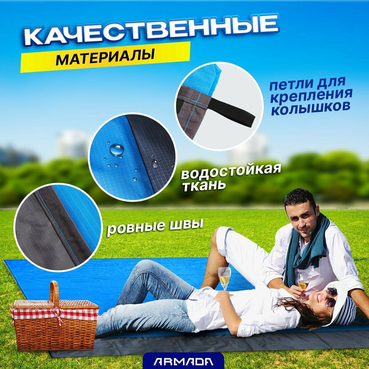 Компактный Пляжный коврик, Туристический коврик, 200х210 см, синий, складной, водонепроницаемый информация:
