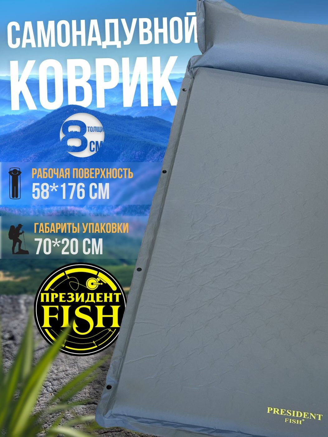 Коврик самонадувающийся туристический PRESIDENT FISH 8898005 PF-08P графит информация: