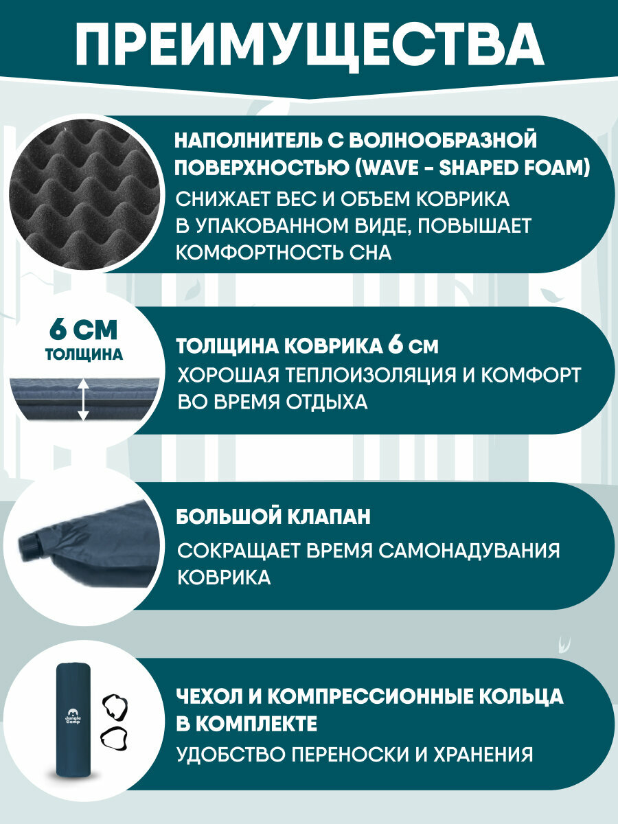 Коврик самонадувающийся кемпинговый, двухспальный JUNGLE CAMP Camper 60 Double, толщина 6 см информация: