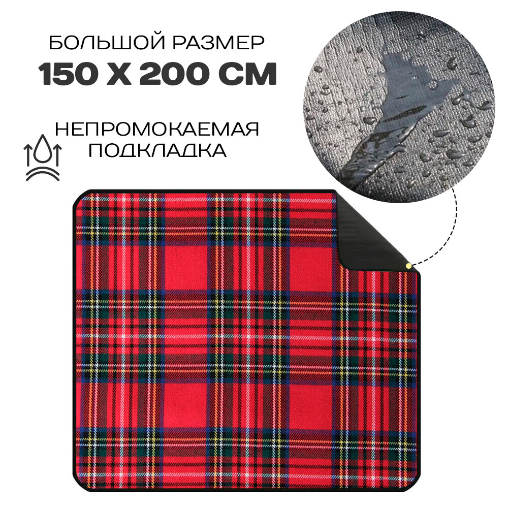 10 цен на Коврик плед сумка в клеточку для пикника 1,5 х 2 м, , цвет - красный