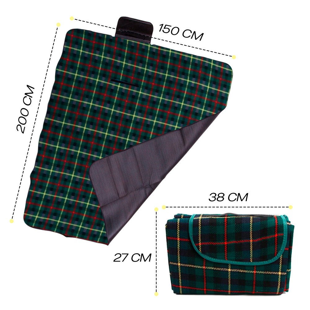 Коврик плед сумка в клеточку для пикника 1,5 х 2 м, цвет - зеленый информация: