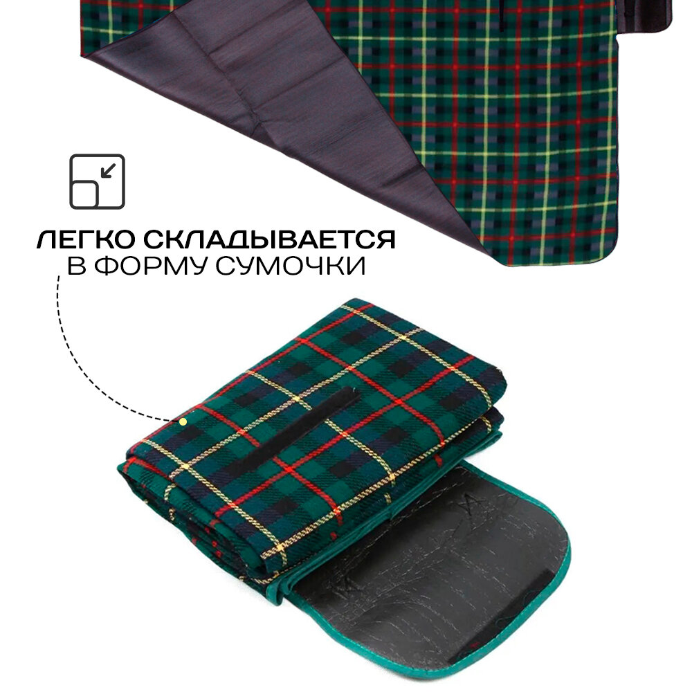 10 цен на Коврик плед сумка в клеточку для пикника 1,5 х 2 м, цвет - зеленый