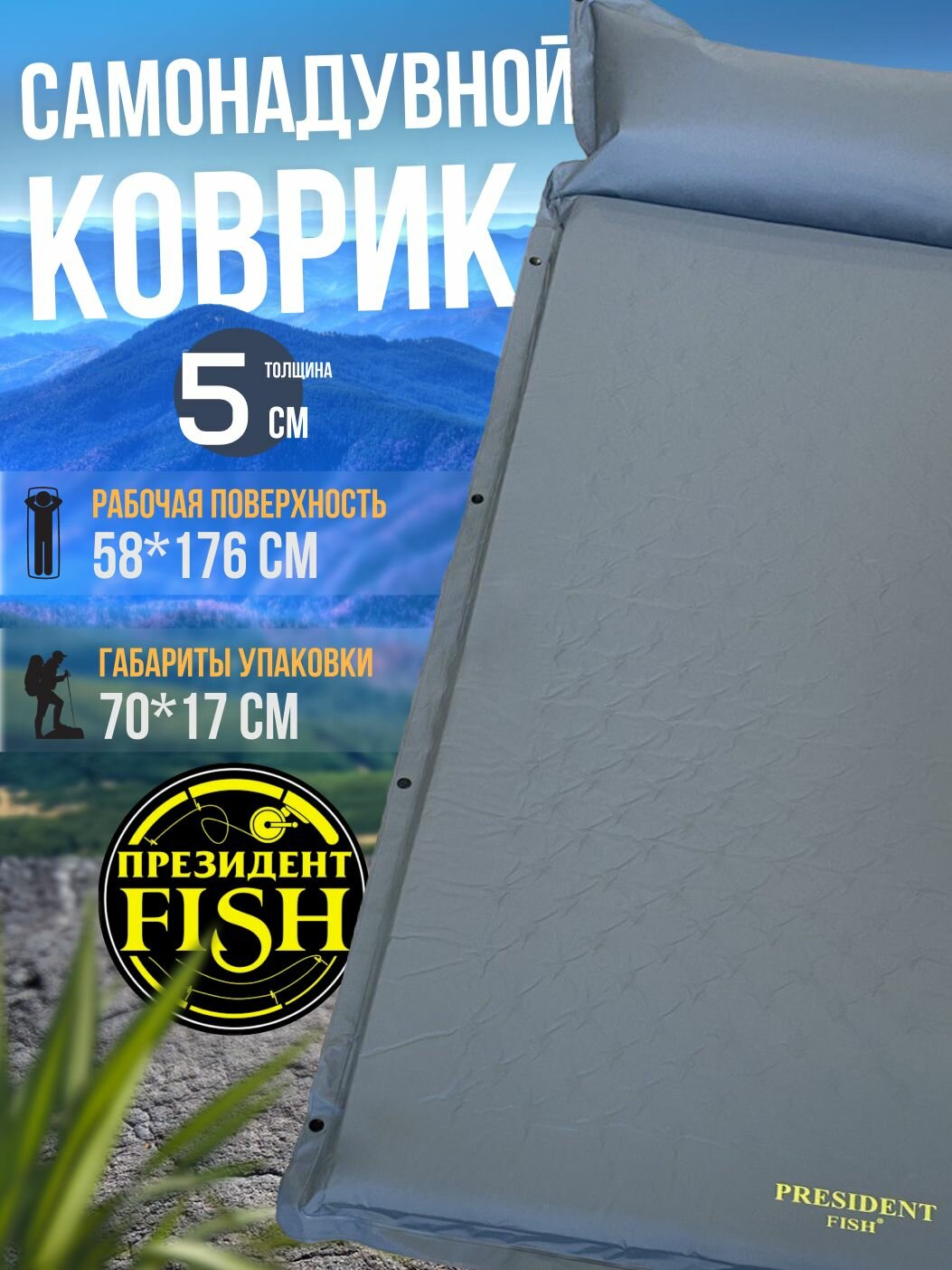Коврик самонадувающийся туристический PRESIDENT FISH 8895005 PF-05P графит информация: