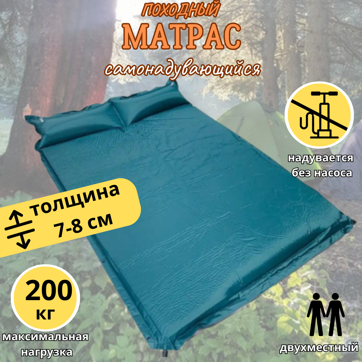 Походный матрас / Туристический коврик самонадувающийся / 2 местный / нагрузка до 200 кг информация: