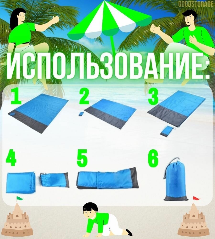 10 цен на Водонепроницаемый пляжный коврик 200х210 L, салатовый