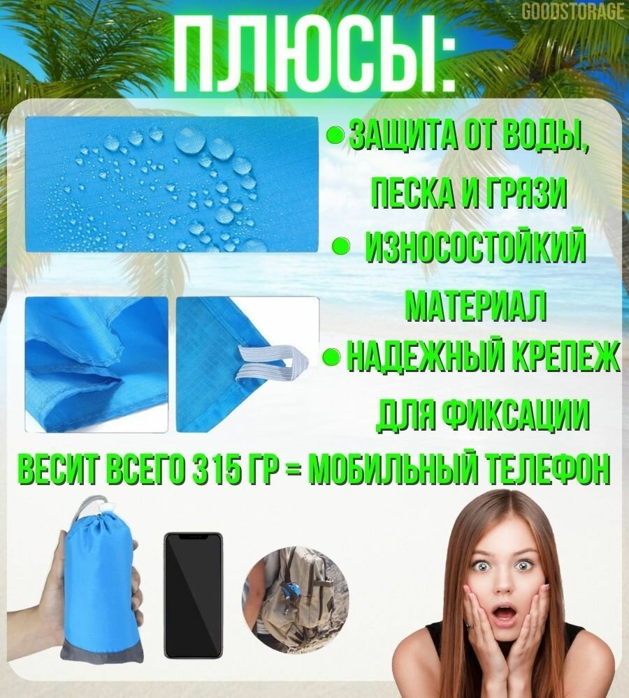 Водонепроницаемый пляжный коврик 200х210 L, салатовый информация: