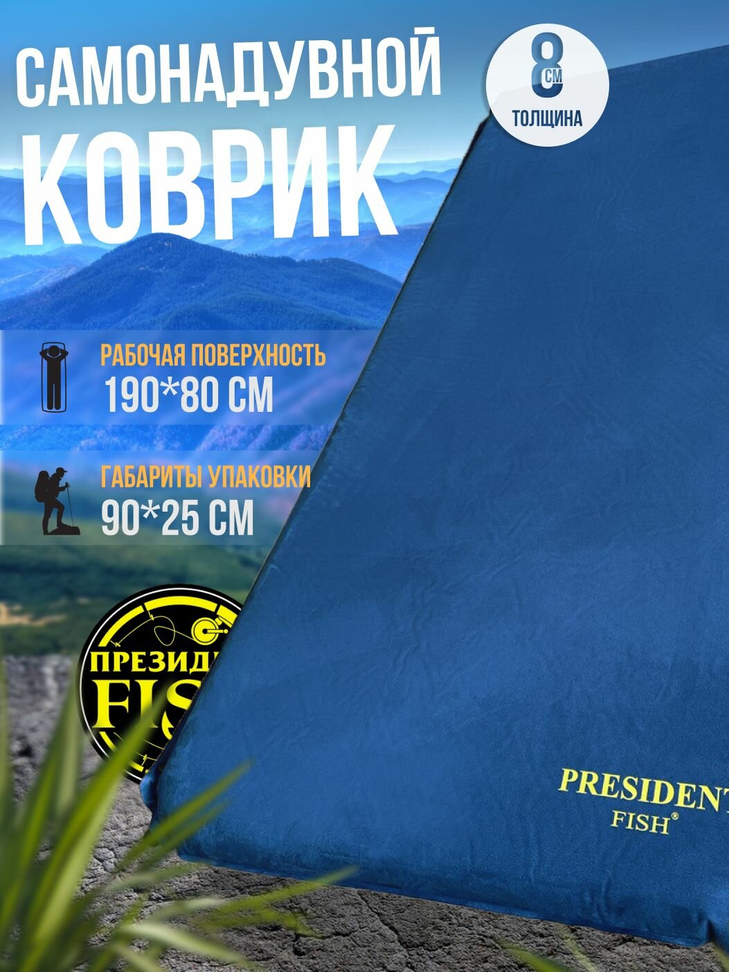 Коврик самонадувающийся туристический PRESIDENT FISH 8812004 PF-08FWPXL синий информация: