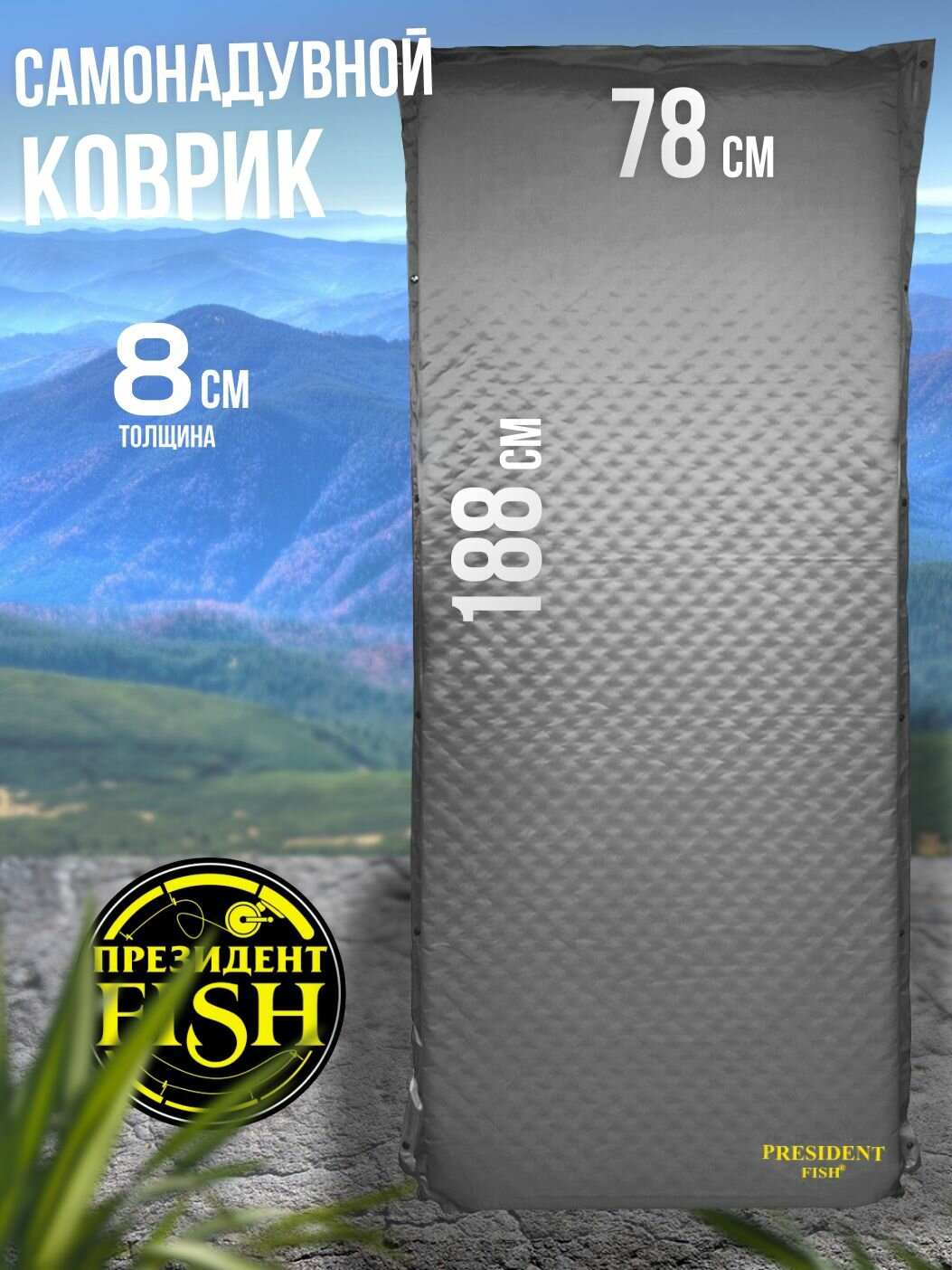 Коврик самонадувающийся туристический PRESIDENT FISH 8891005 PF-10WP графит информация: