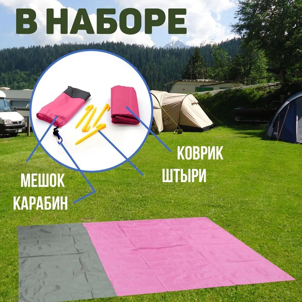 10 цен на Водонепроницаемый пляжный коврик 200х140 размер M, розовый, с чехлом