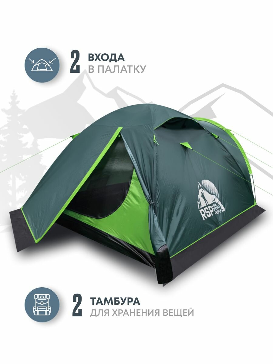 10 цен на Палатка 3-х местная RSP River 3, пол в тамбуре, юбка (цв. зеленый)