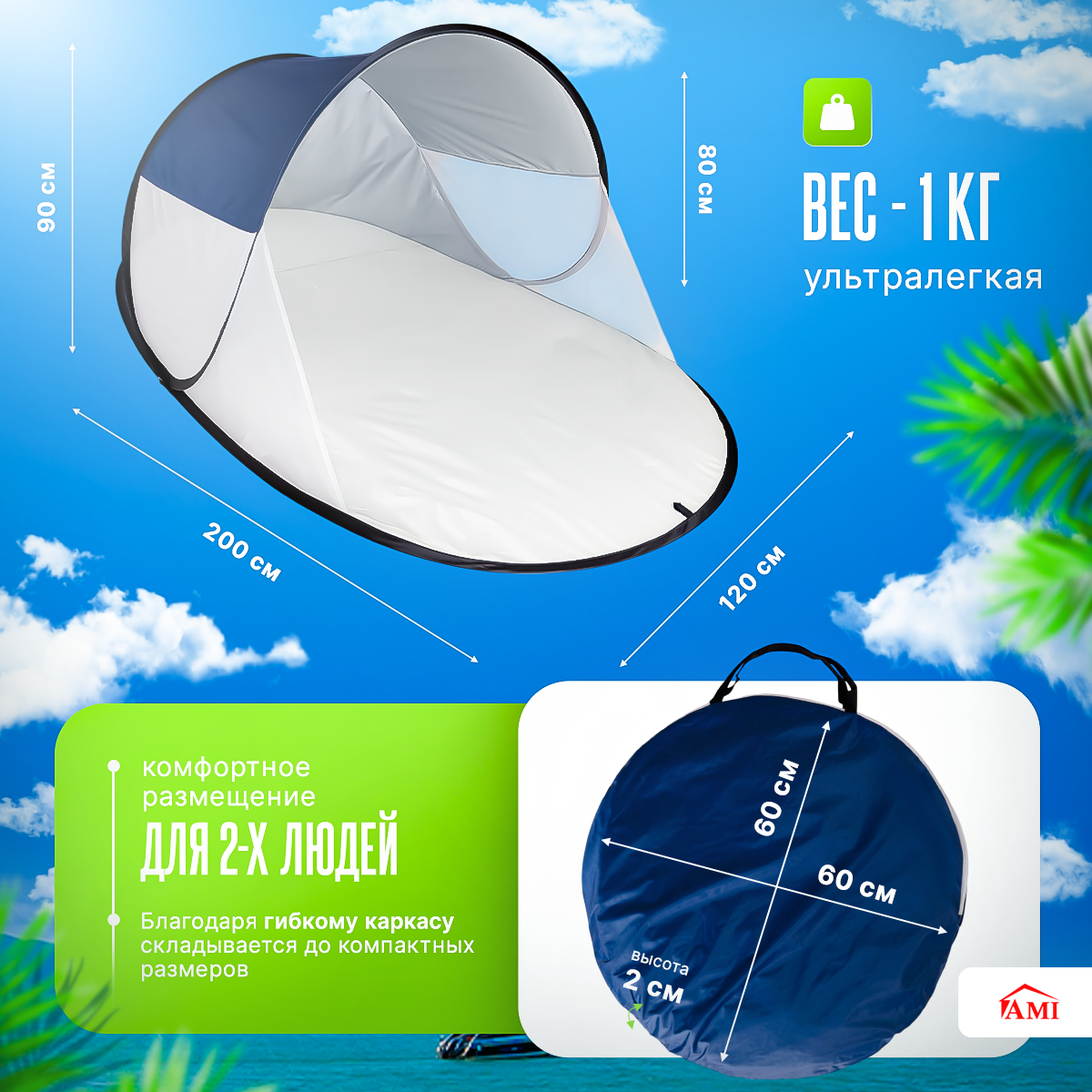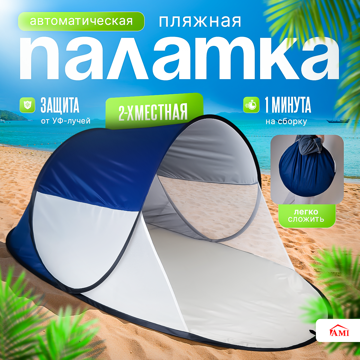 10 цен на Палатка пляжная от солнца 2 местная туристическая Sun, автоматическая быстросборная летняя, спорт инвентарь, АМИ МЕБЕЛЬ