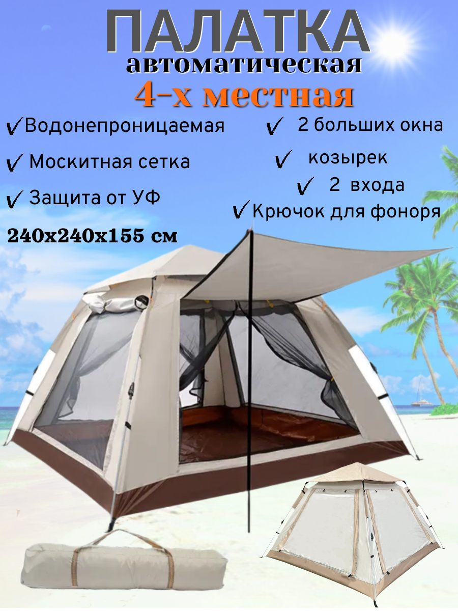 Туристическая палатка / Автоматическая палатка 4-х местная, 240*240*155 см, бежевый 4 990 ₽