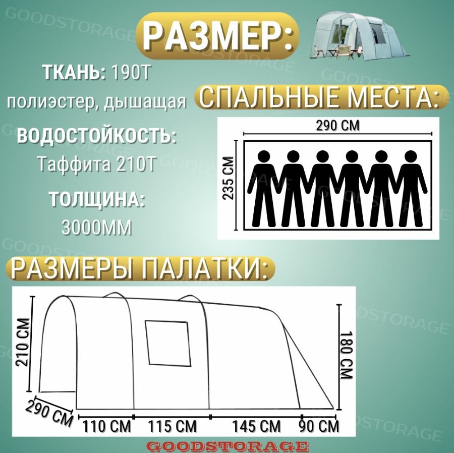 Палатка туристическая 6 местная с тамбуром LY-27 информация: