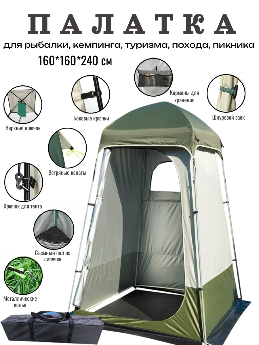 Палатка душ, туалет Туристическая палатка одноместная для переодевания 160х160х240 см информация: