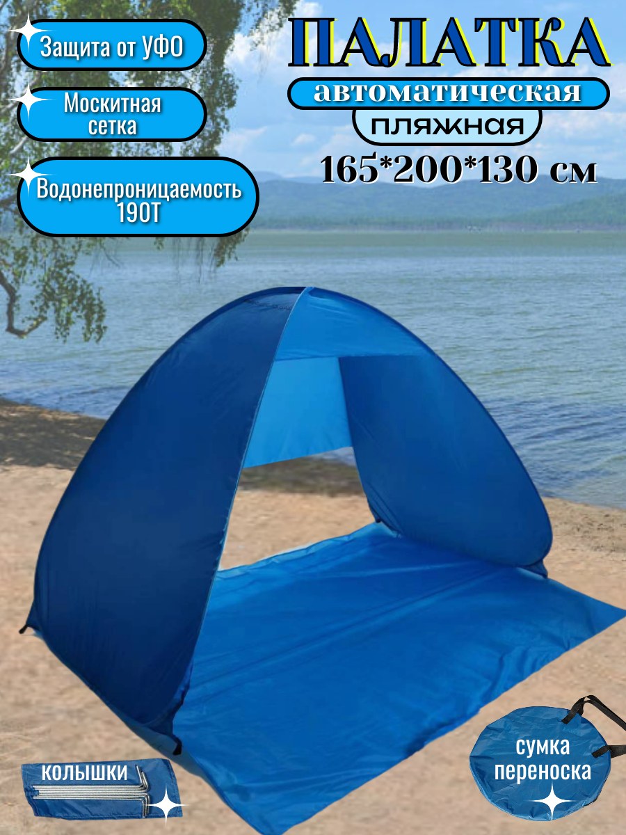 Пляжная палатка Coolwalk, тент от солнца, автоматическая, 3-х местная, 200х165х130 см, синяя информация: