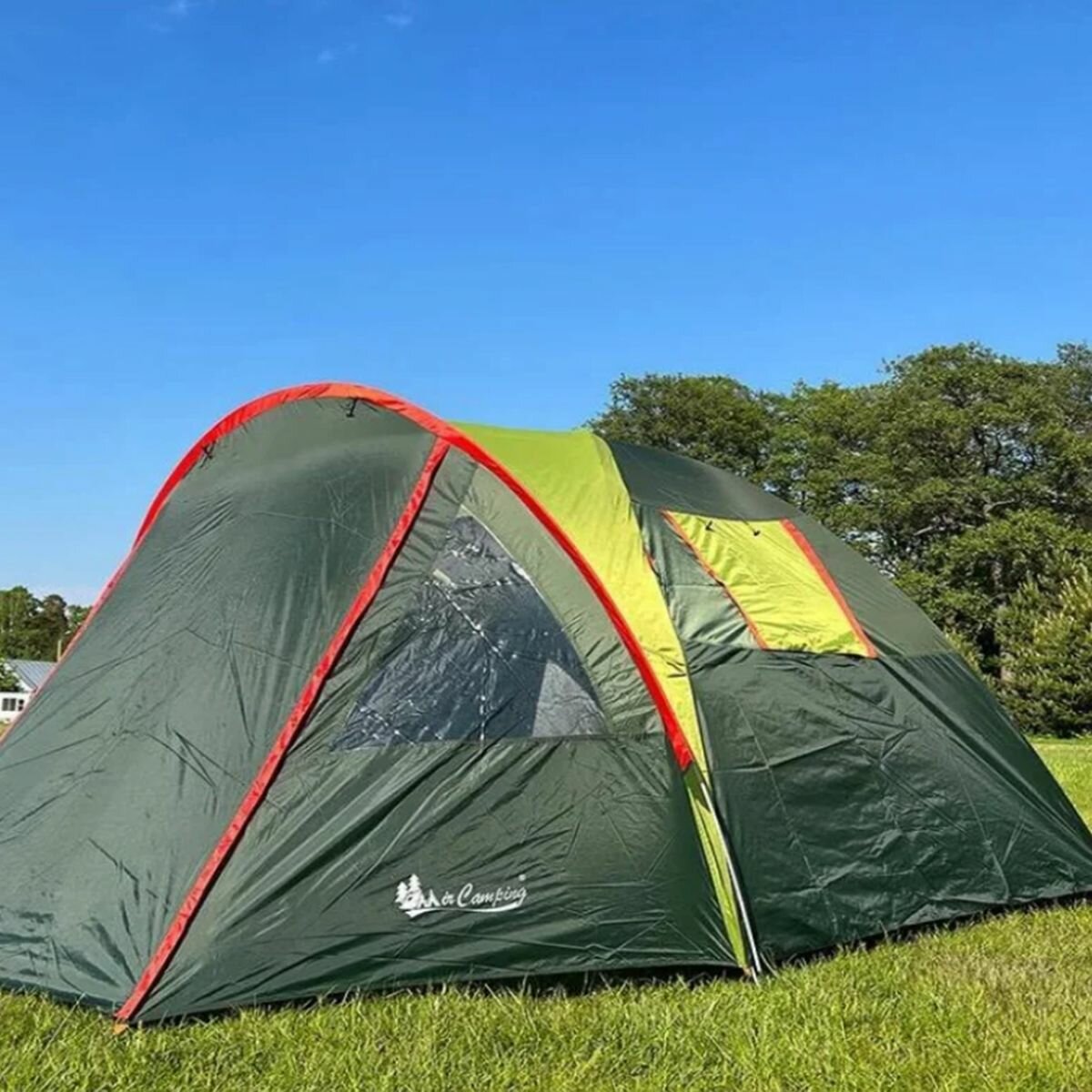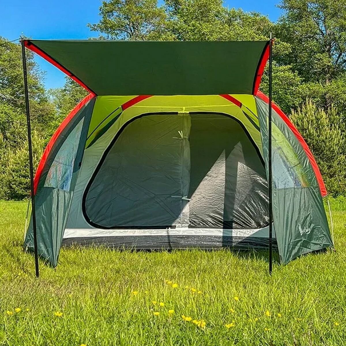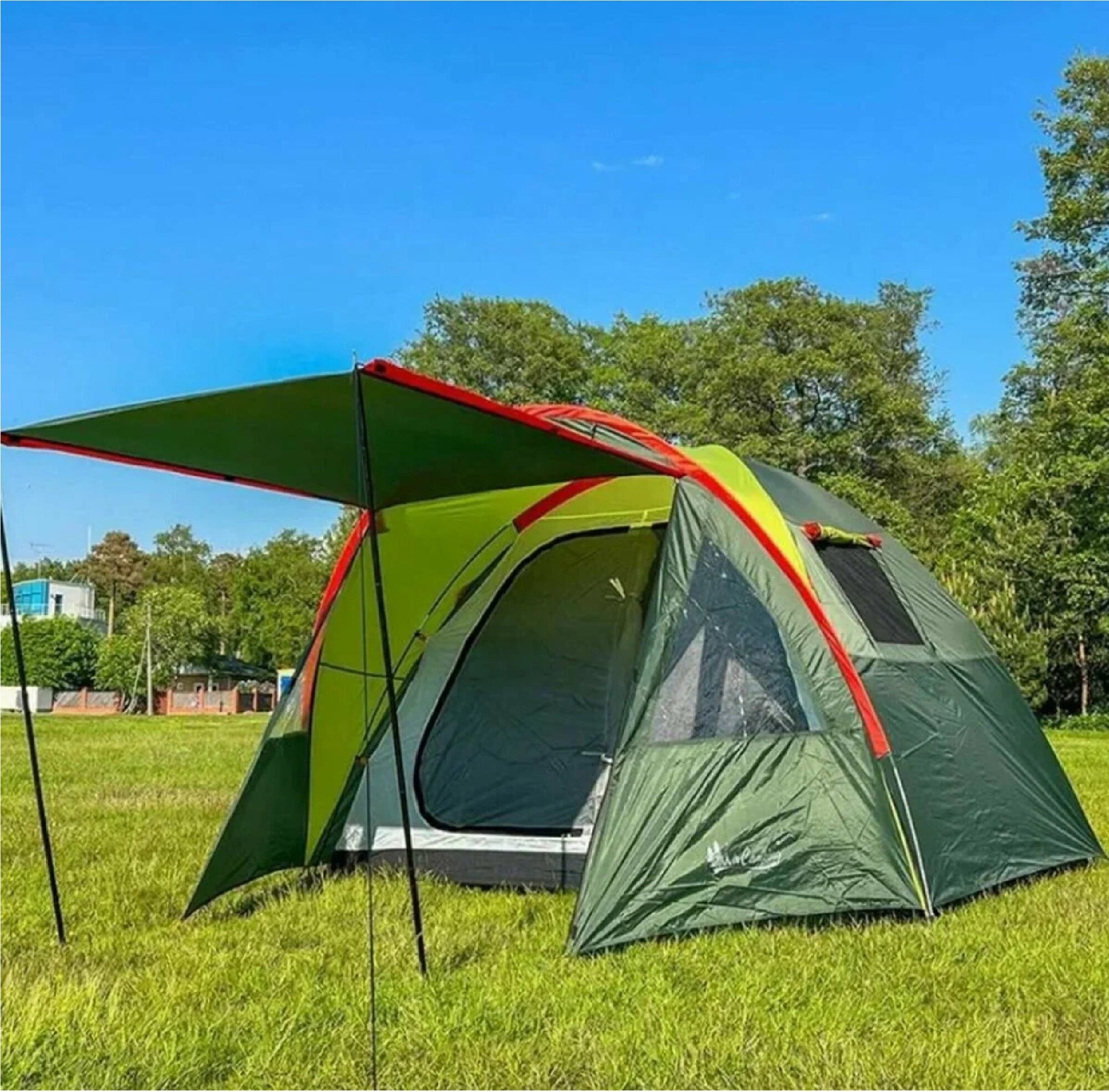 Туристическая палатка 4-местная, с тамбуром, (2 слоя) дуги стекловолокно, вес 8,5кг ART1005-4 (зеленая)