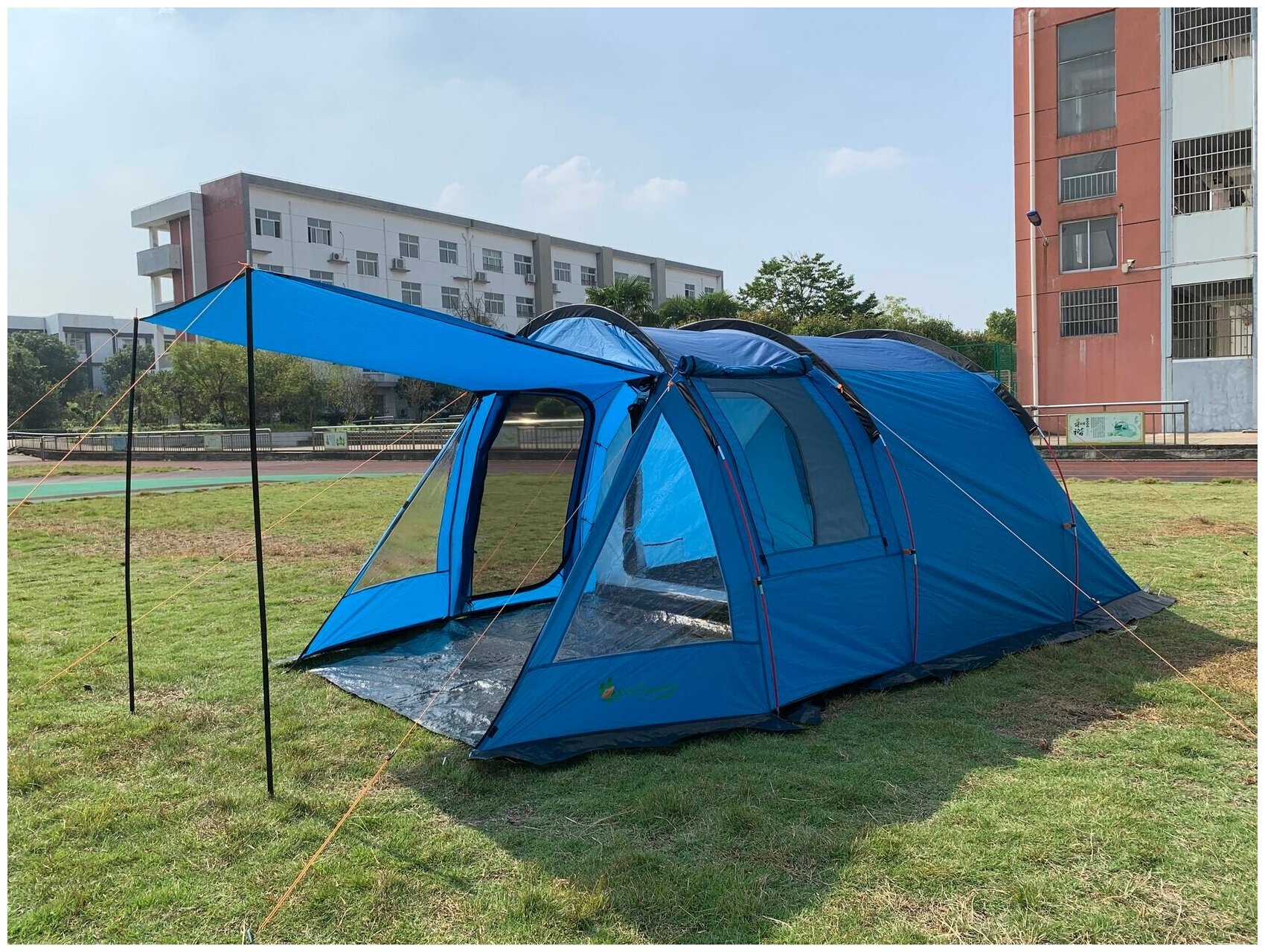 Туристическая палатка 4-местная, с тамбуром, (2 слоя) дуги стекловолокно, вес 8,5кг ART1005-4 (зеленая)