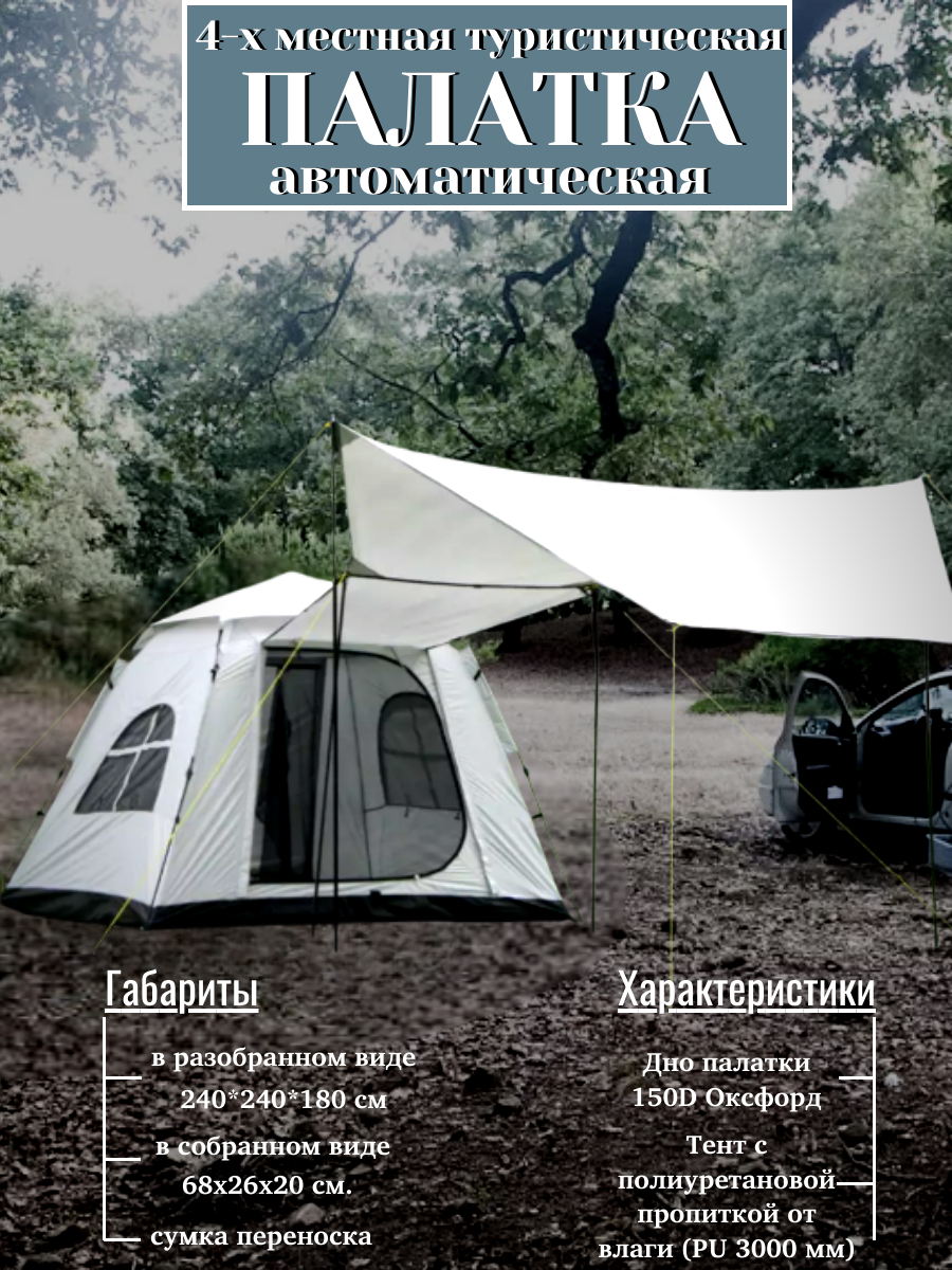 Палатка туристическая 3-4 местная Палатка для отдыха автоматическая кемпинговая, 240*240*180 см информация: