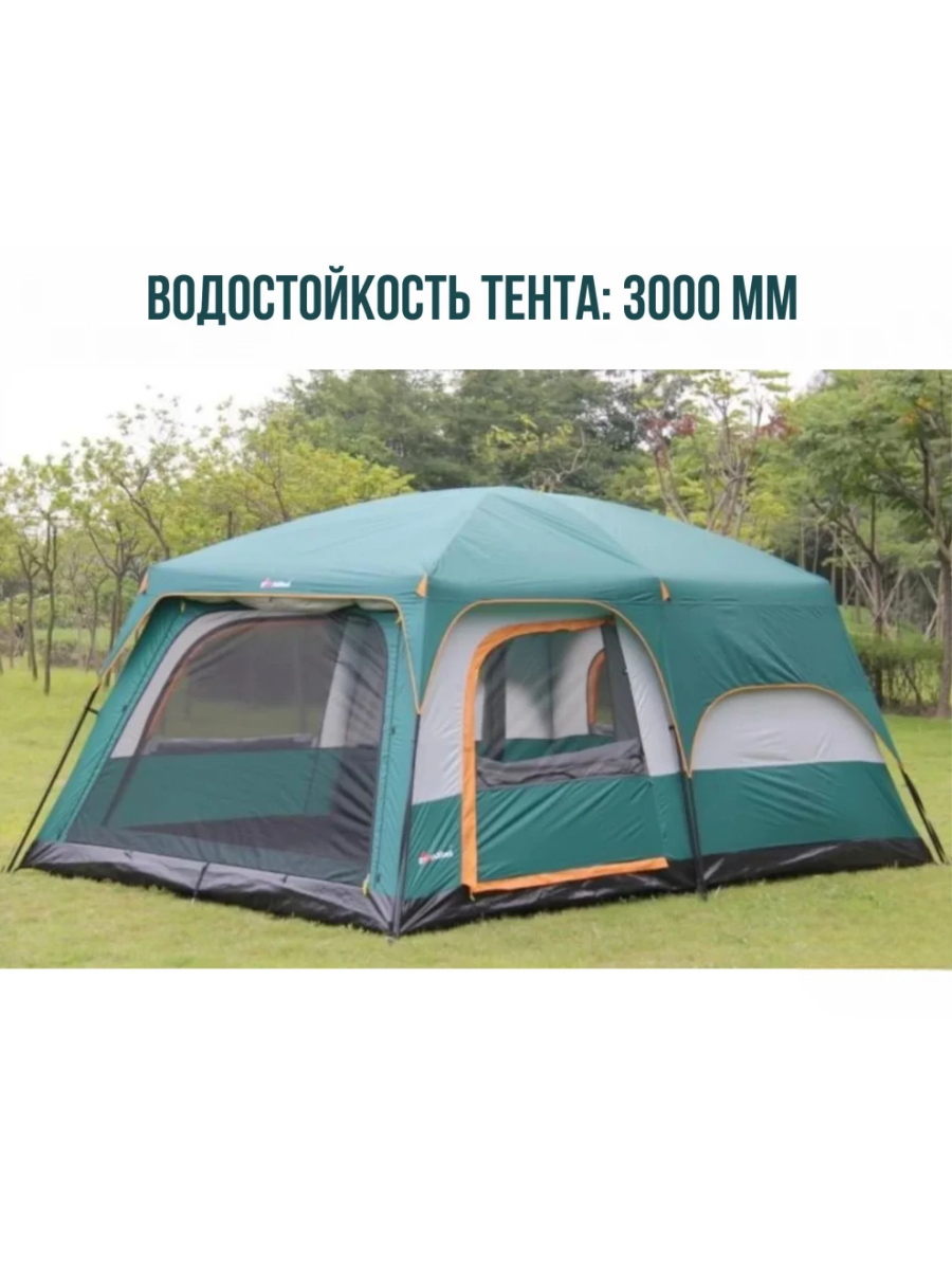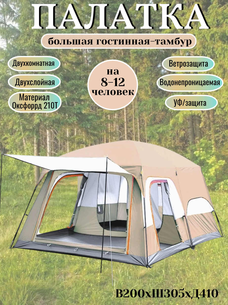 Палатка туристическая на 8-12 мест / Палатка с тамбуром, двухкомнатная и цельным полом, 410х305х200 см, цвет бежевый информация:
