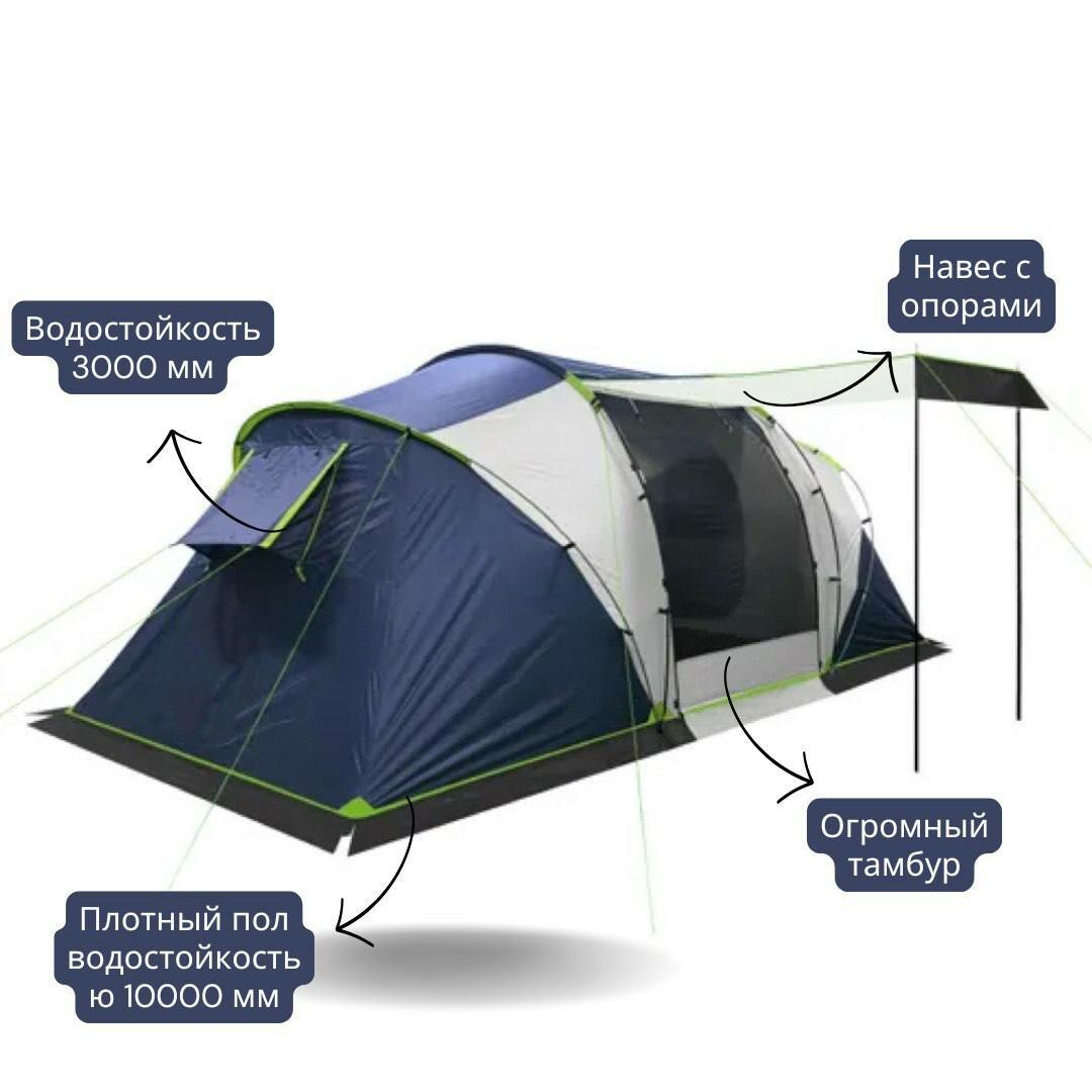 10 цен на Палатка кемпинговая , двухкомнатная, 4-х местная (цв. синий)