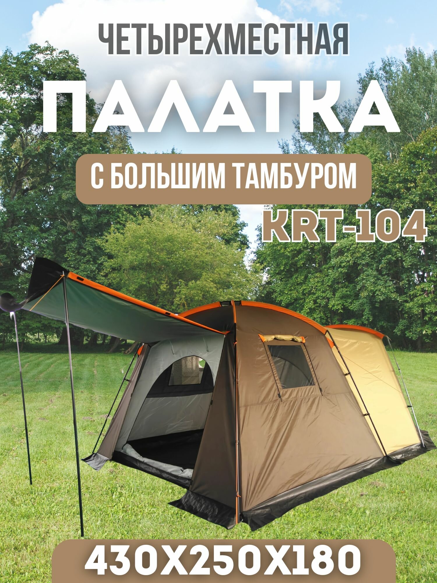 Палатка кемпинговая 4-х местная KRT-104 информация: