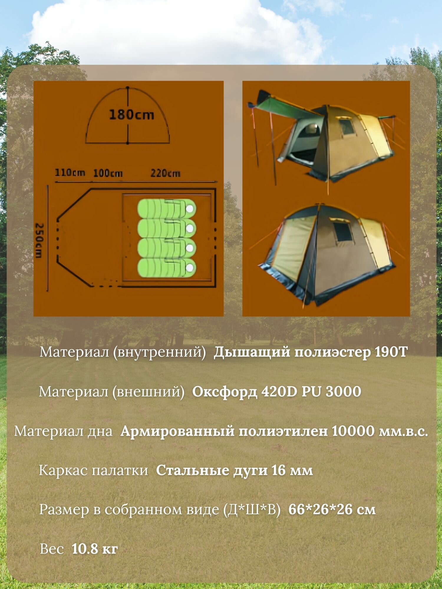 Палатка туристическая 4-х местная двухслойная с тамбуром 5 700 ₽
