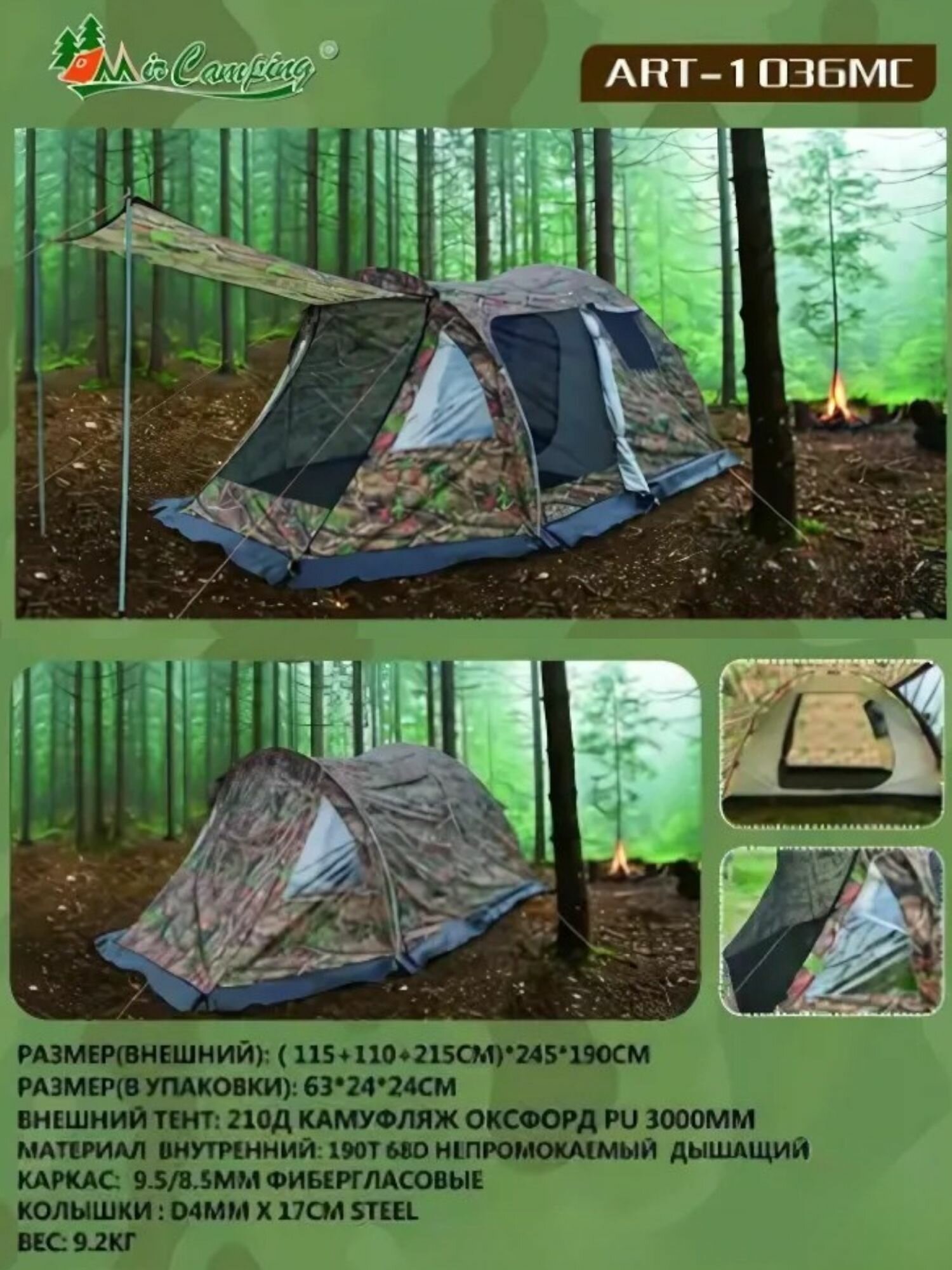 Четырехместная туристическая палатка ART 1036MC информация: