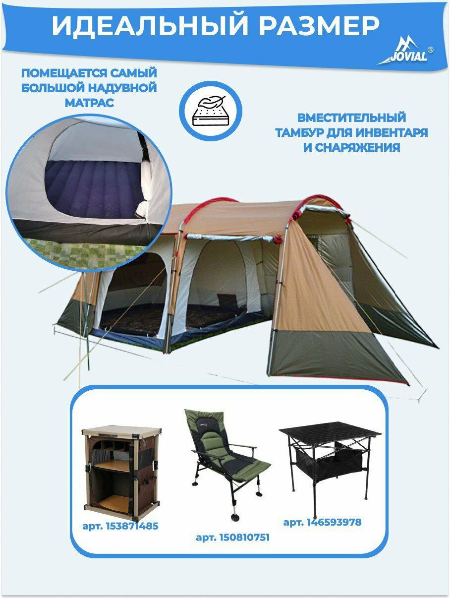 10 цен на Палатка туристическая, Jovial 1915, 4-х местная с большим тамбуром-кухней, 240х142х120, h195см