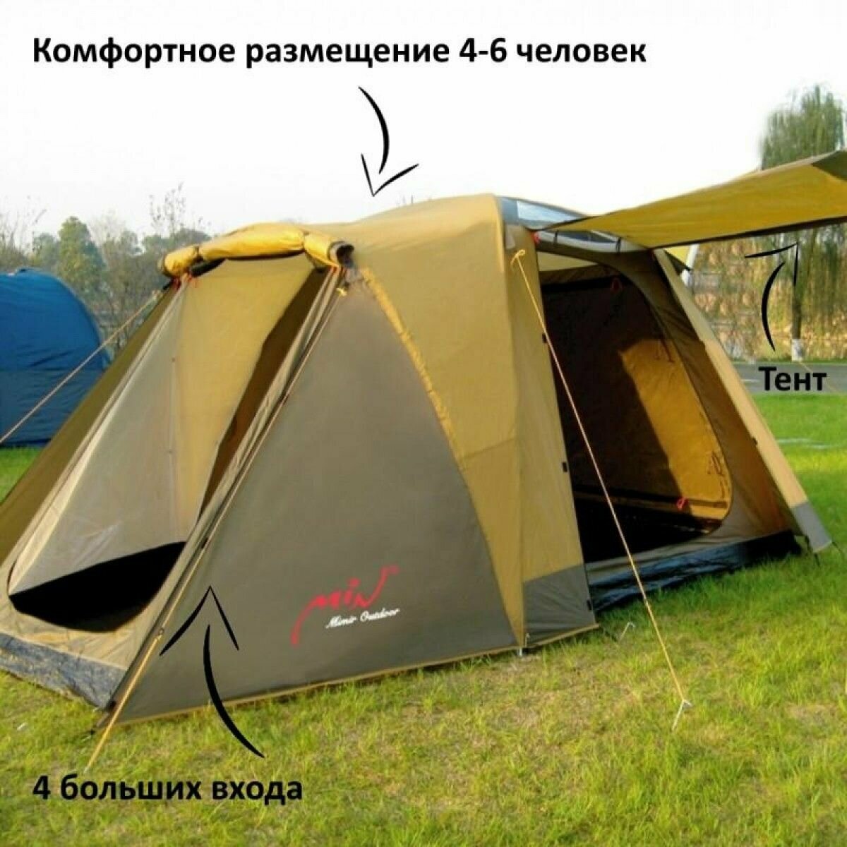 Шатер палатка туристическая 4-местная mircamping 1100-4 с москитной сеткой, 2 комнаты и тамбур 15 643 ₽