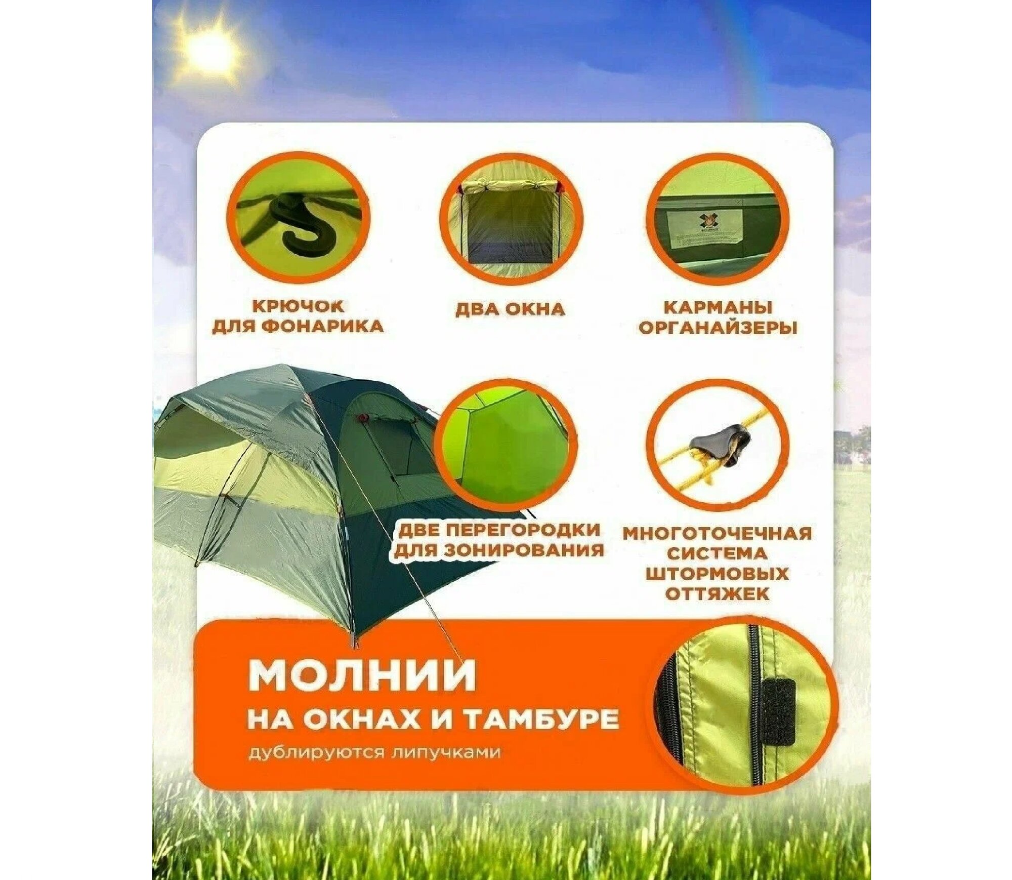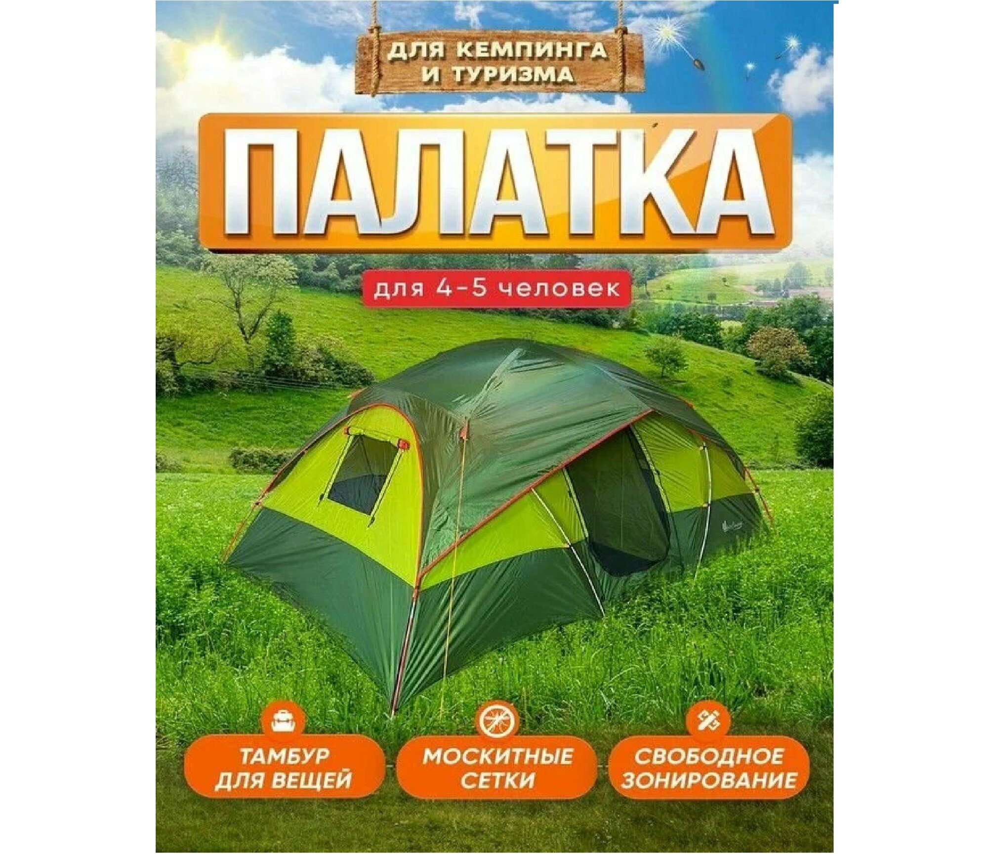 10 цен на Шатер палатка туристическая 4-местная mircamping 1100-4 с москитной сеткой, 2 комнаты и тамбур