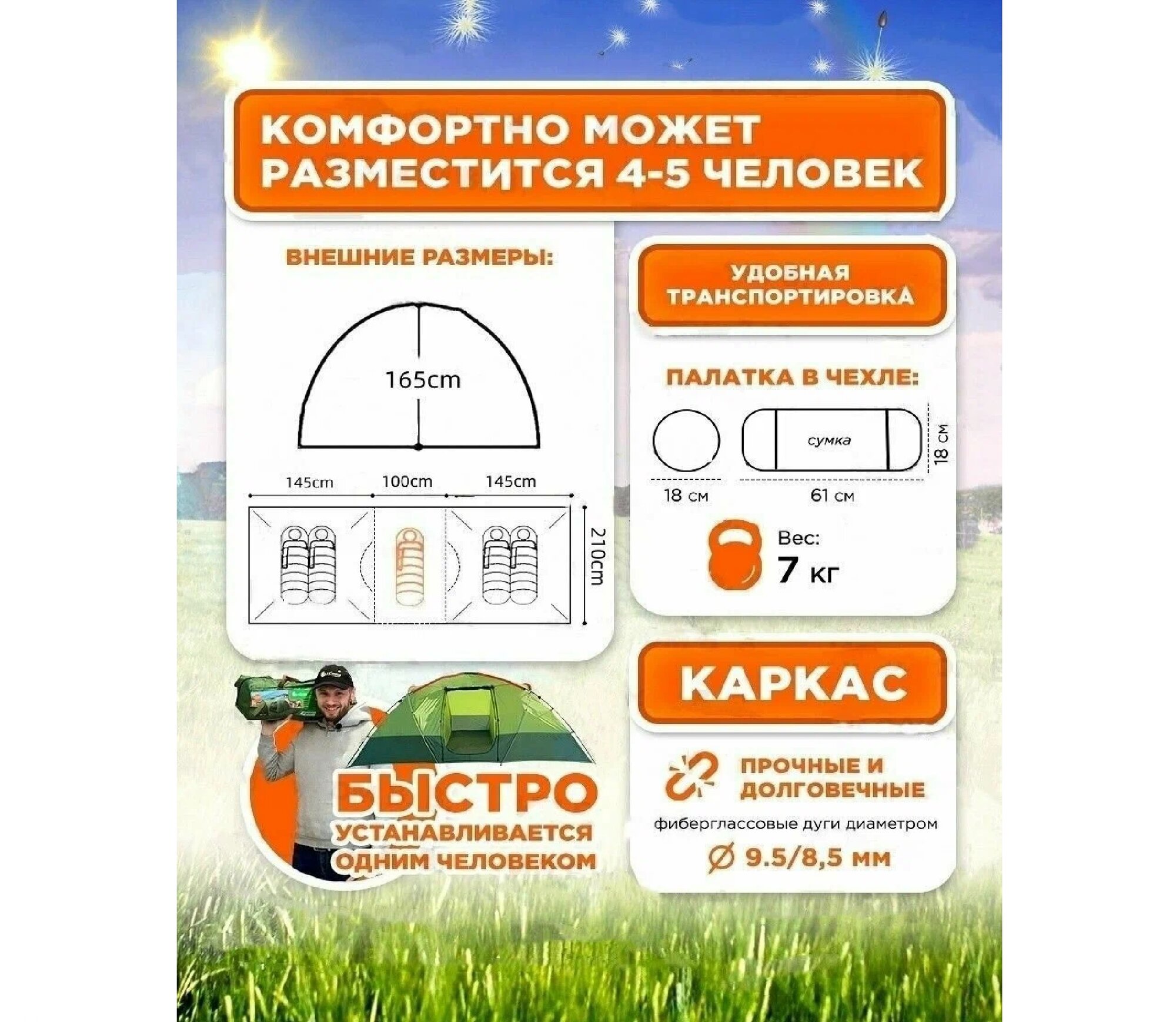 Шатер палатка туристическая 4-местная mircamping 1100-4 с москитной сеткой, 2 комнаты и тамбур информация:
