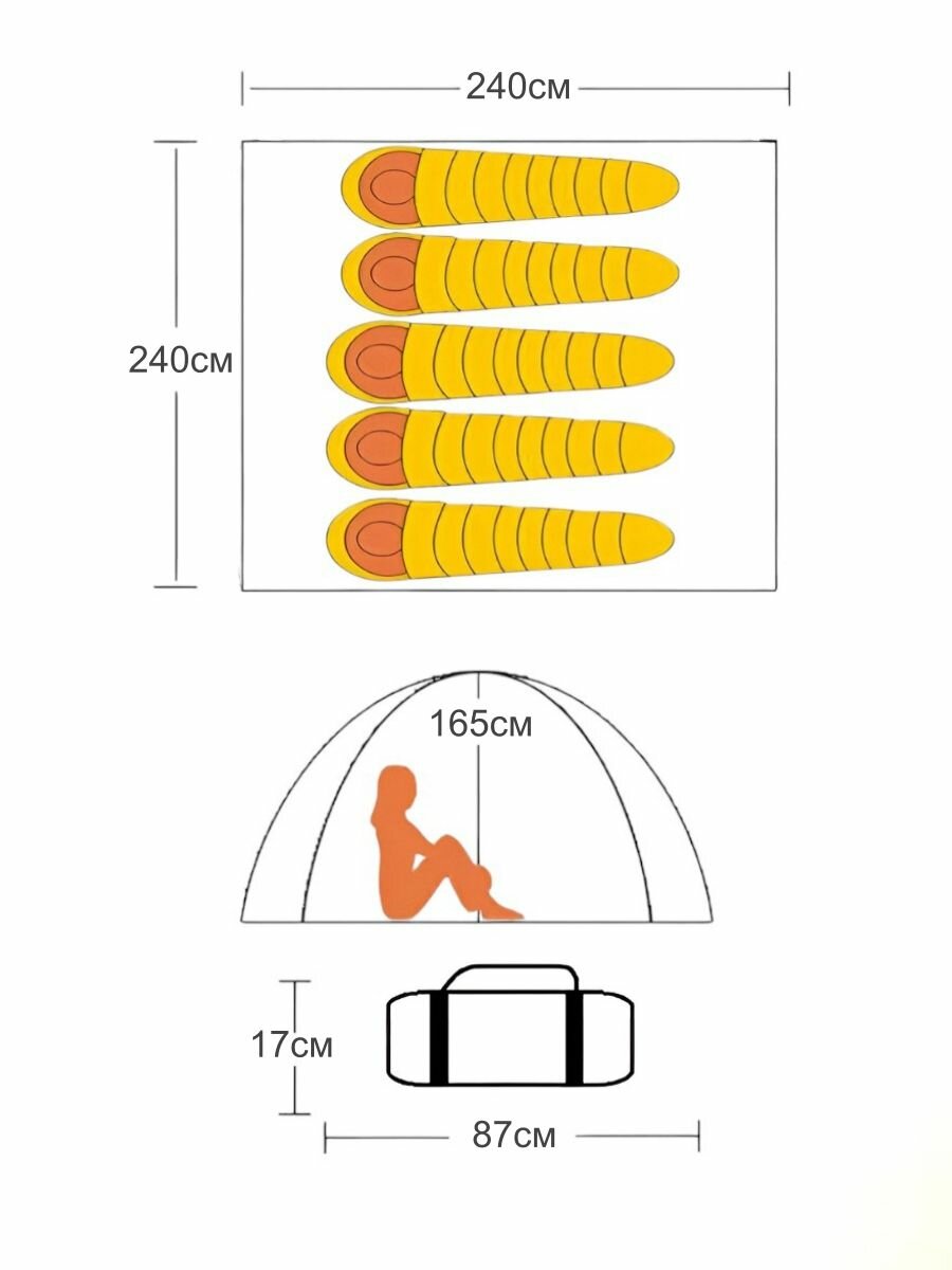 Палатка туристическая с москитными сетками / автоматическая 5-местная / шатер 240х240х165 информация: