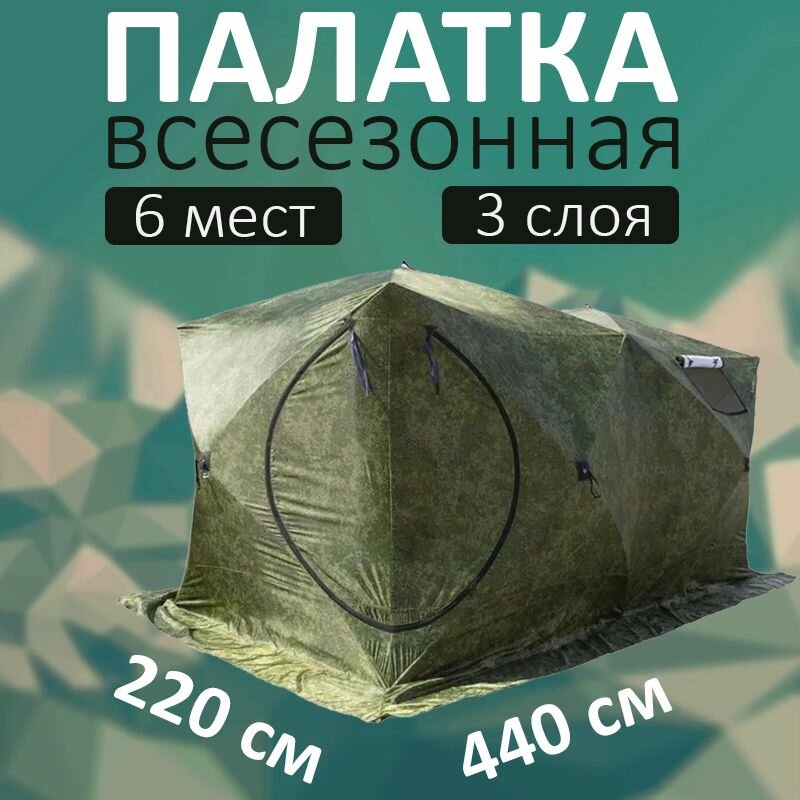 Палатка Стэк КУБ-3 дубль камуфляж (пиксель) - всесезонная быстросборная универсальная 6 местная палатка информация: