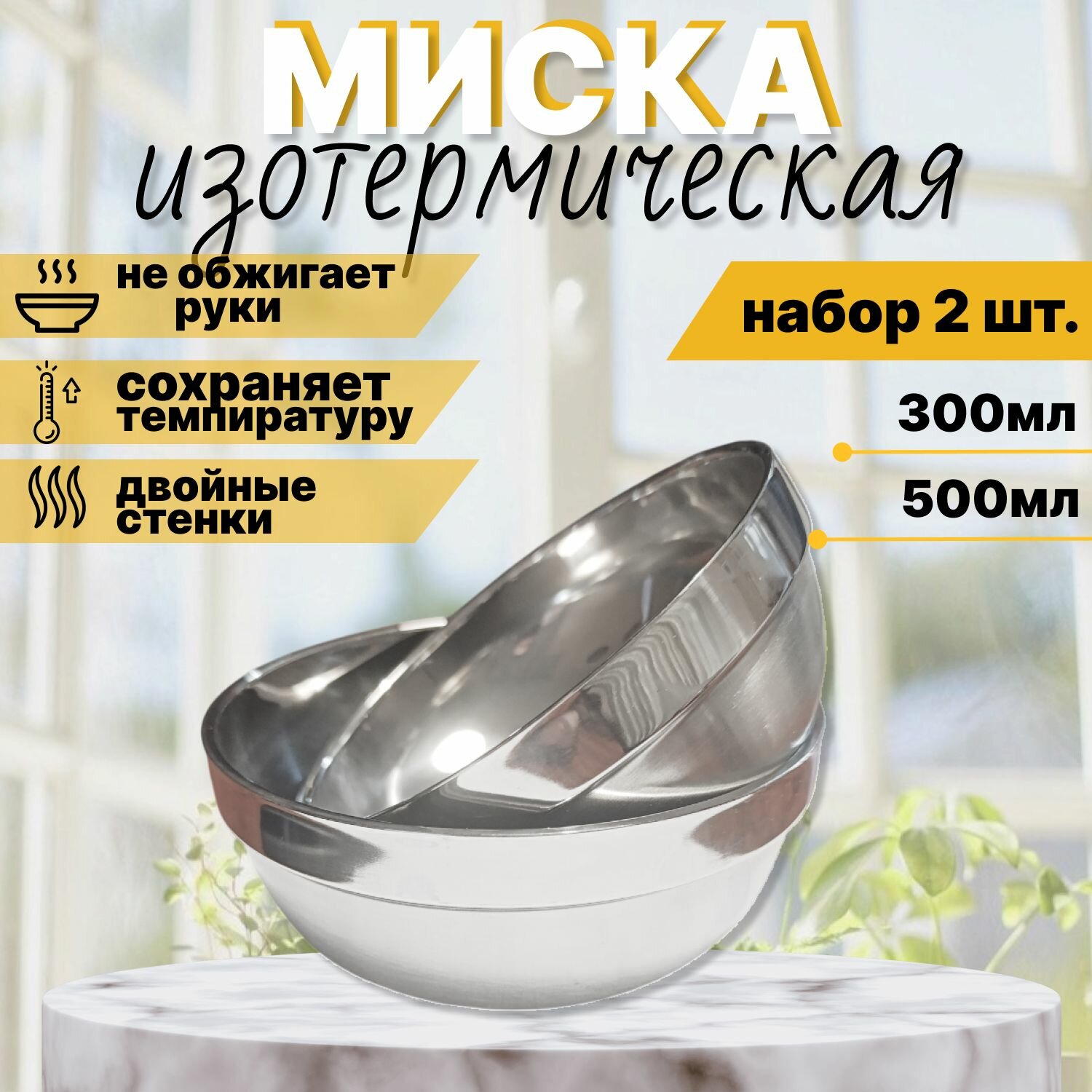 10 цен на Набор посуды, миски изотермические, 2 штуки (300 и 500мл)