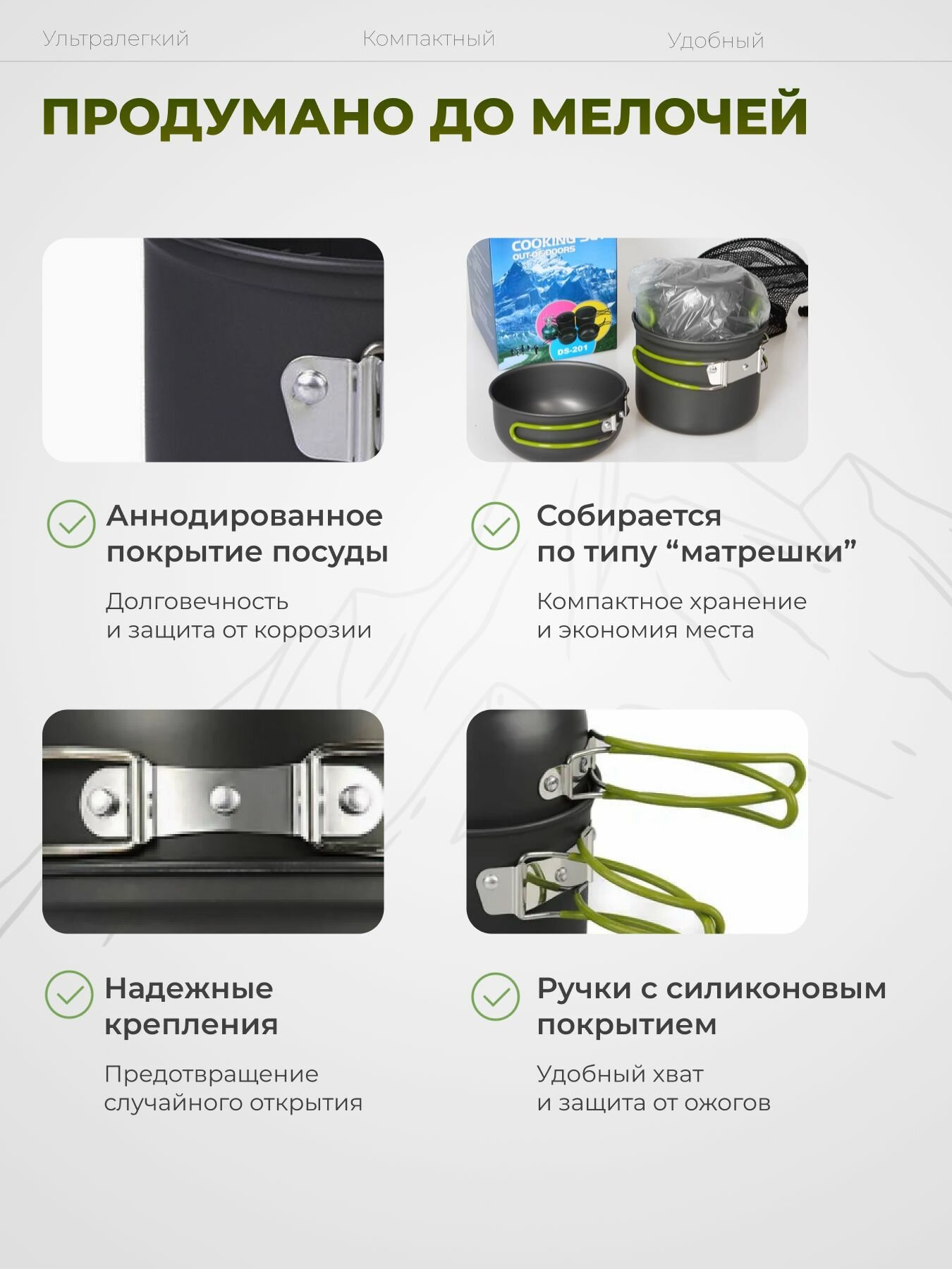 Набор туристической посуды на 2-3 персоны, компактный складной набор для похода, кемпинга и пикника информация: