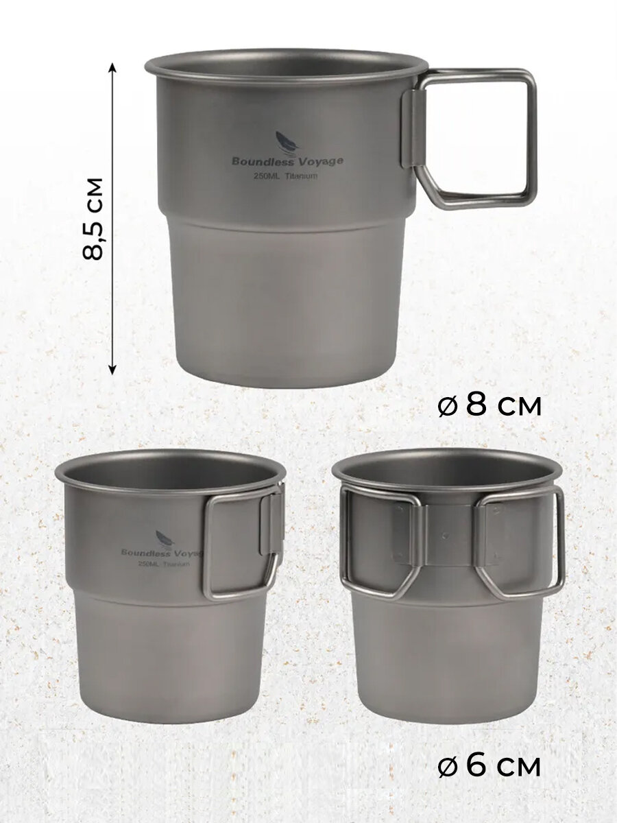 Отзывы на Титановая чашка походная 250 мл со складными ручками Ti3050D/Туристическая кружка из титана для похода