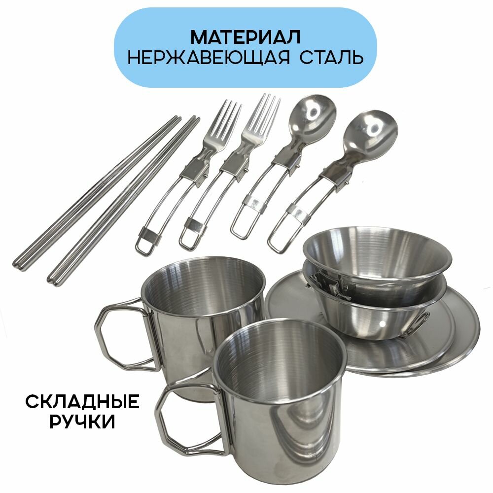 Походный набор складной туристической посуды из нержавеющей стали, 12 предметов информация: