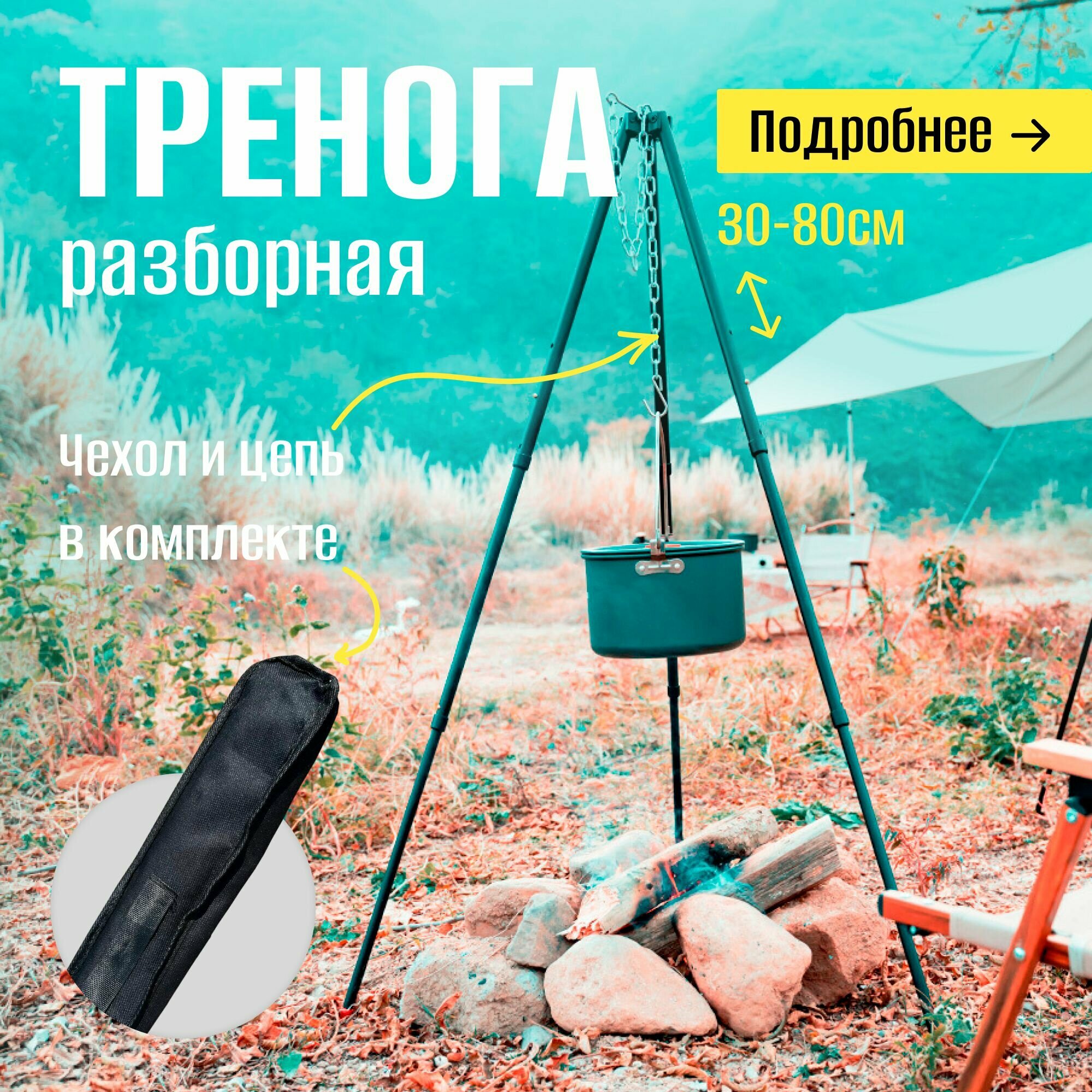 Отзывы на Тренога костровая разборная / Тренога для костра и походного котелка в чехле 80 см
