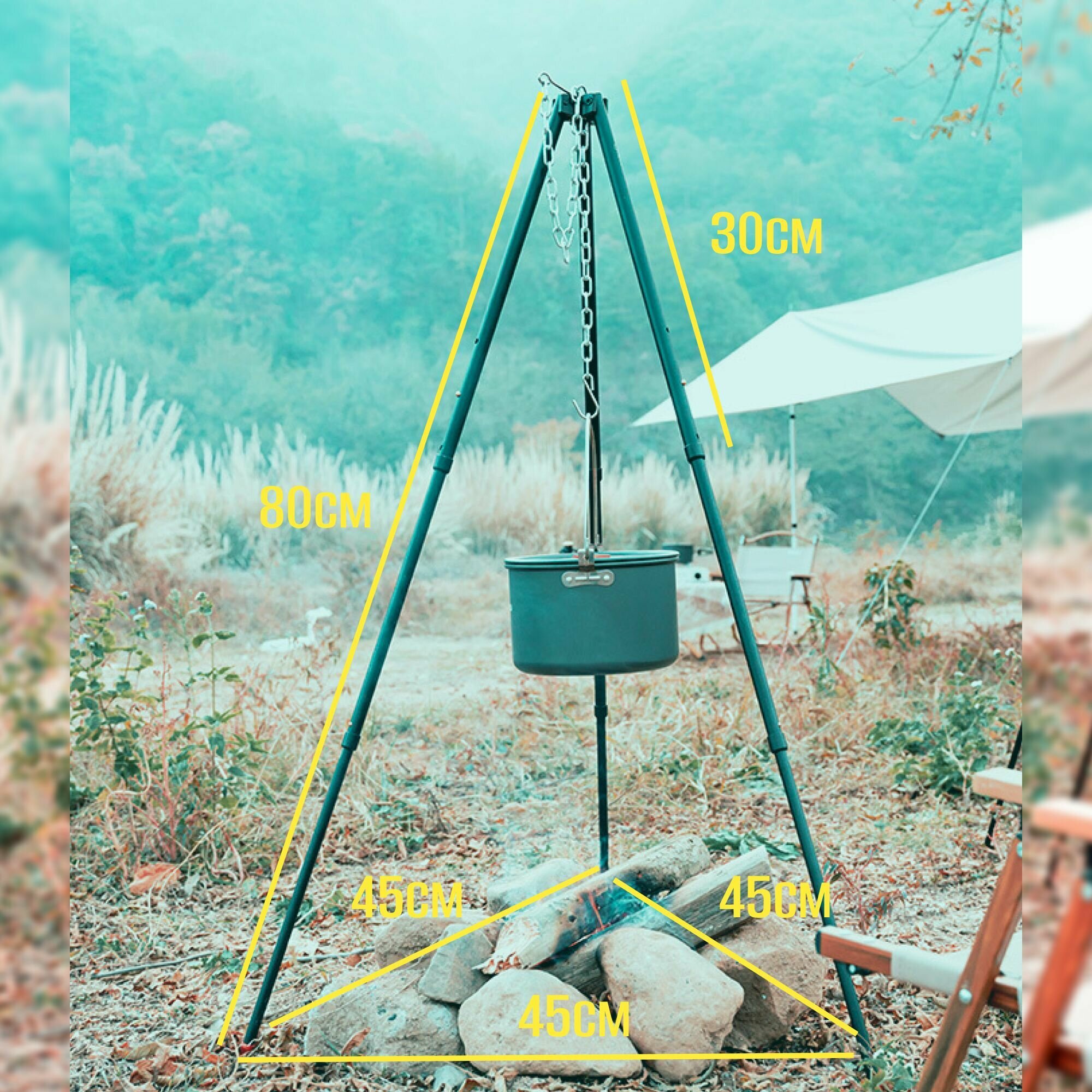 10 цен на Тренога костровая разборная / Тренога для костра и походного котелка в чехле 80 см