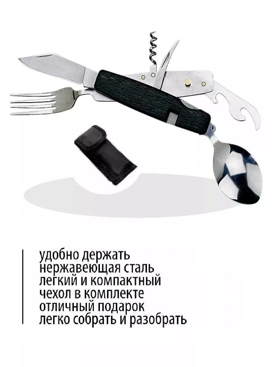 Отзывы на Набор складных столовых походных приборов 6 в 1, нож, вилка, ложка, штопор, в чехле