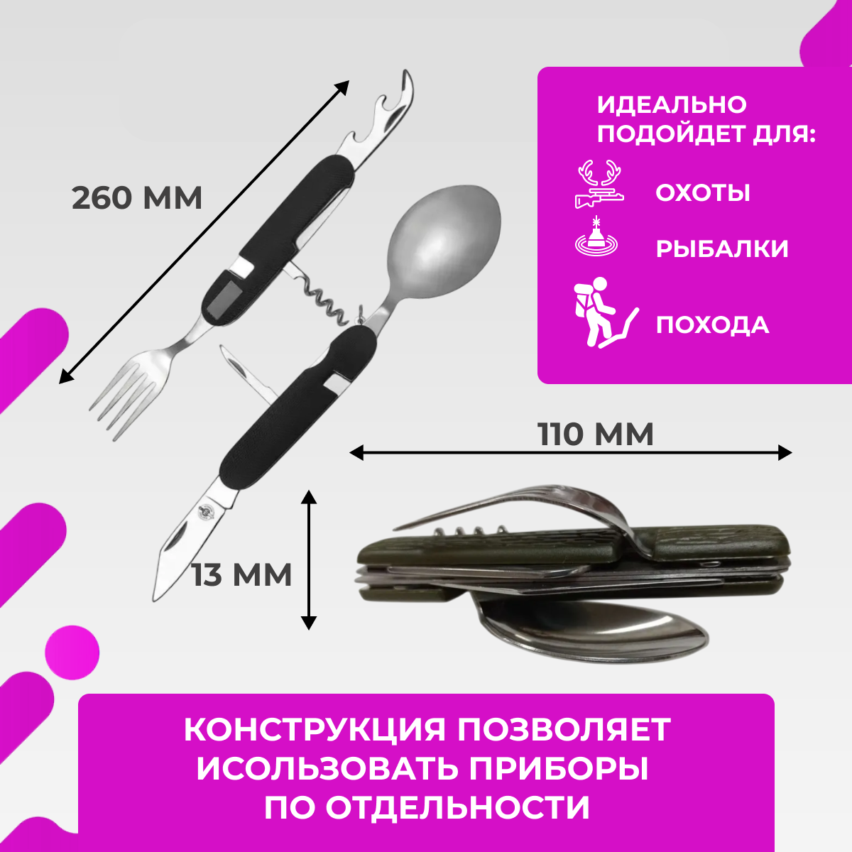10 цен на Набор складных столовых походных приборов 6 в 1, нож, вилка, ложка, штопор, в чехле
