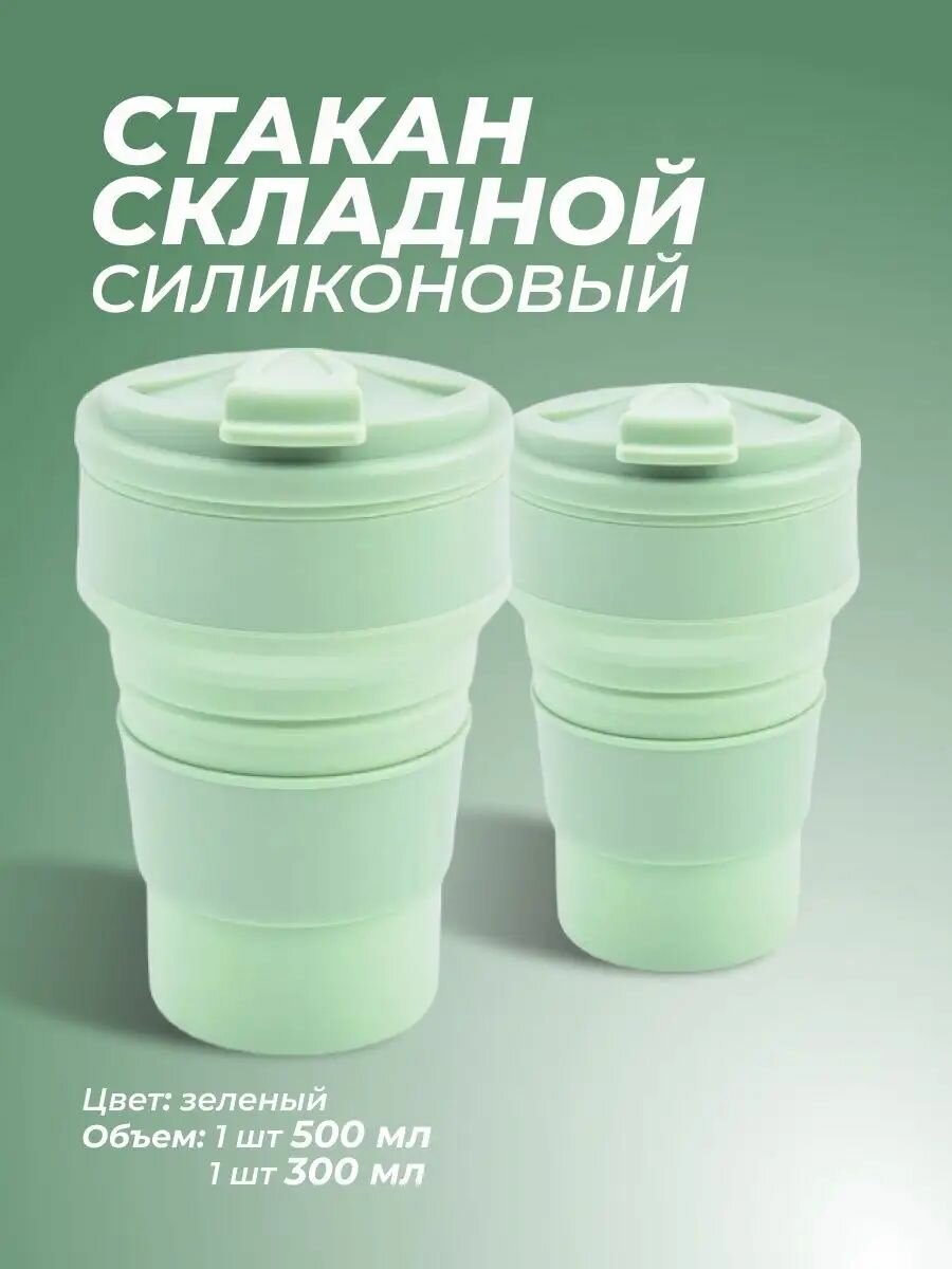 Стакан силиконовый складной, 500 мл, зеленый 870 ₽